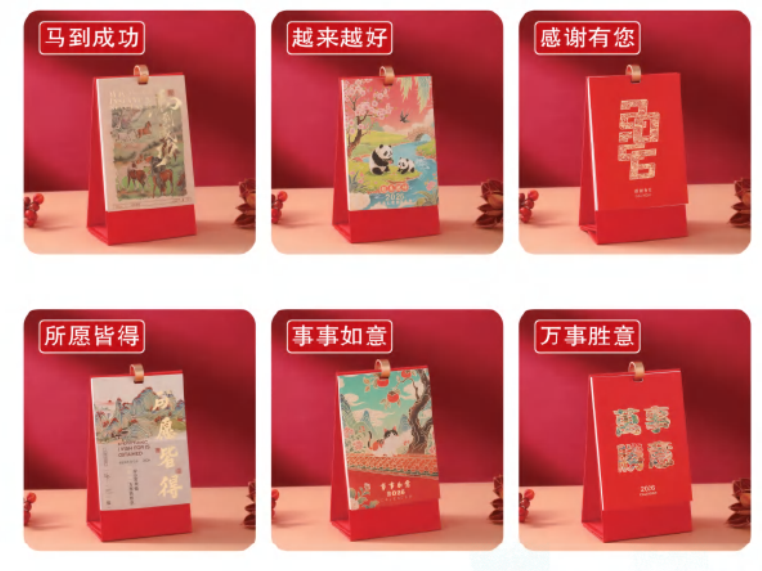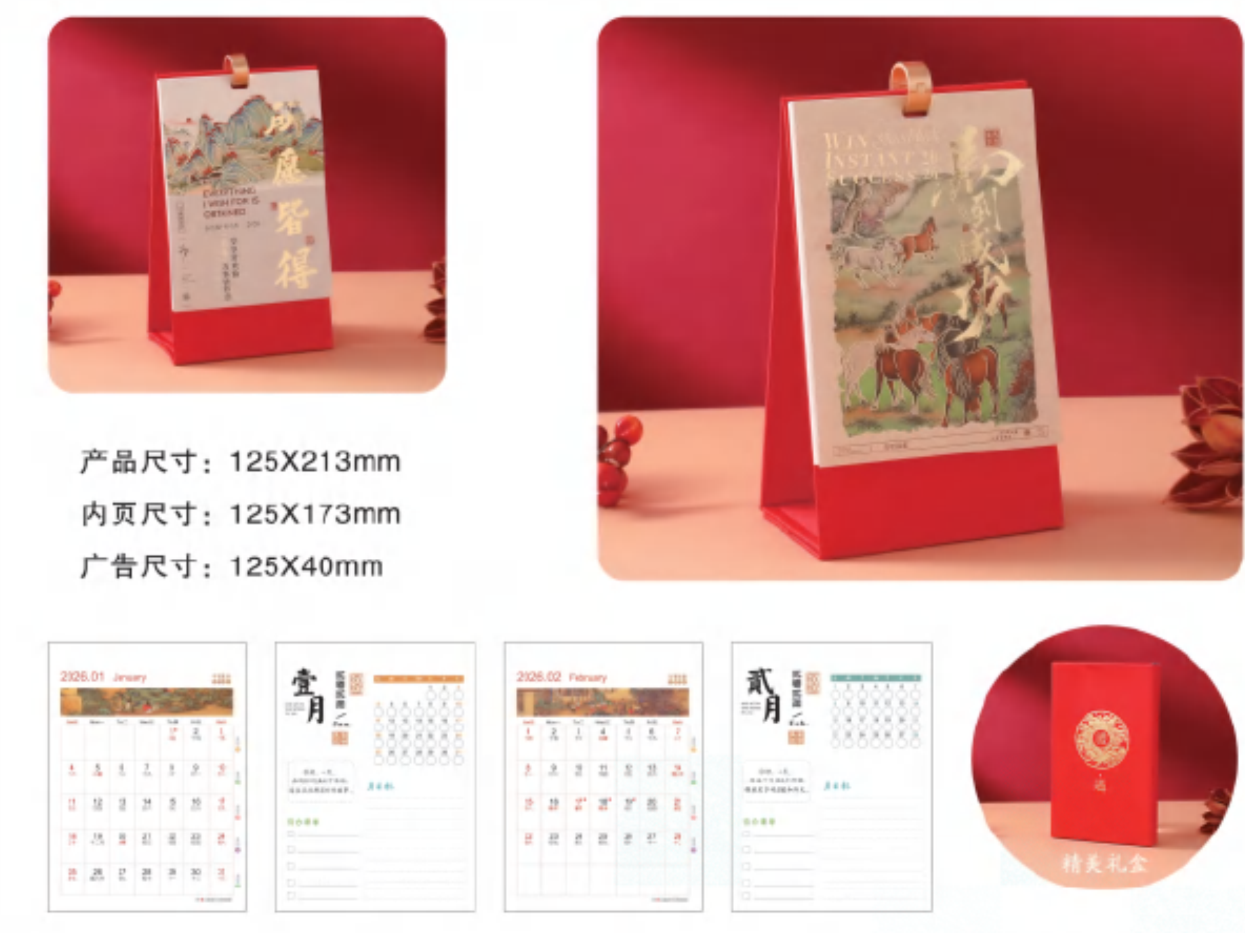 布艺单环扣礼盒台历-马到成功