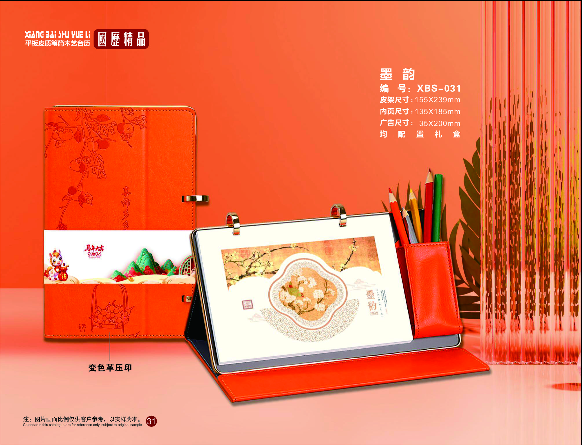 平板皮质笔筒木艺台历-墨韵