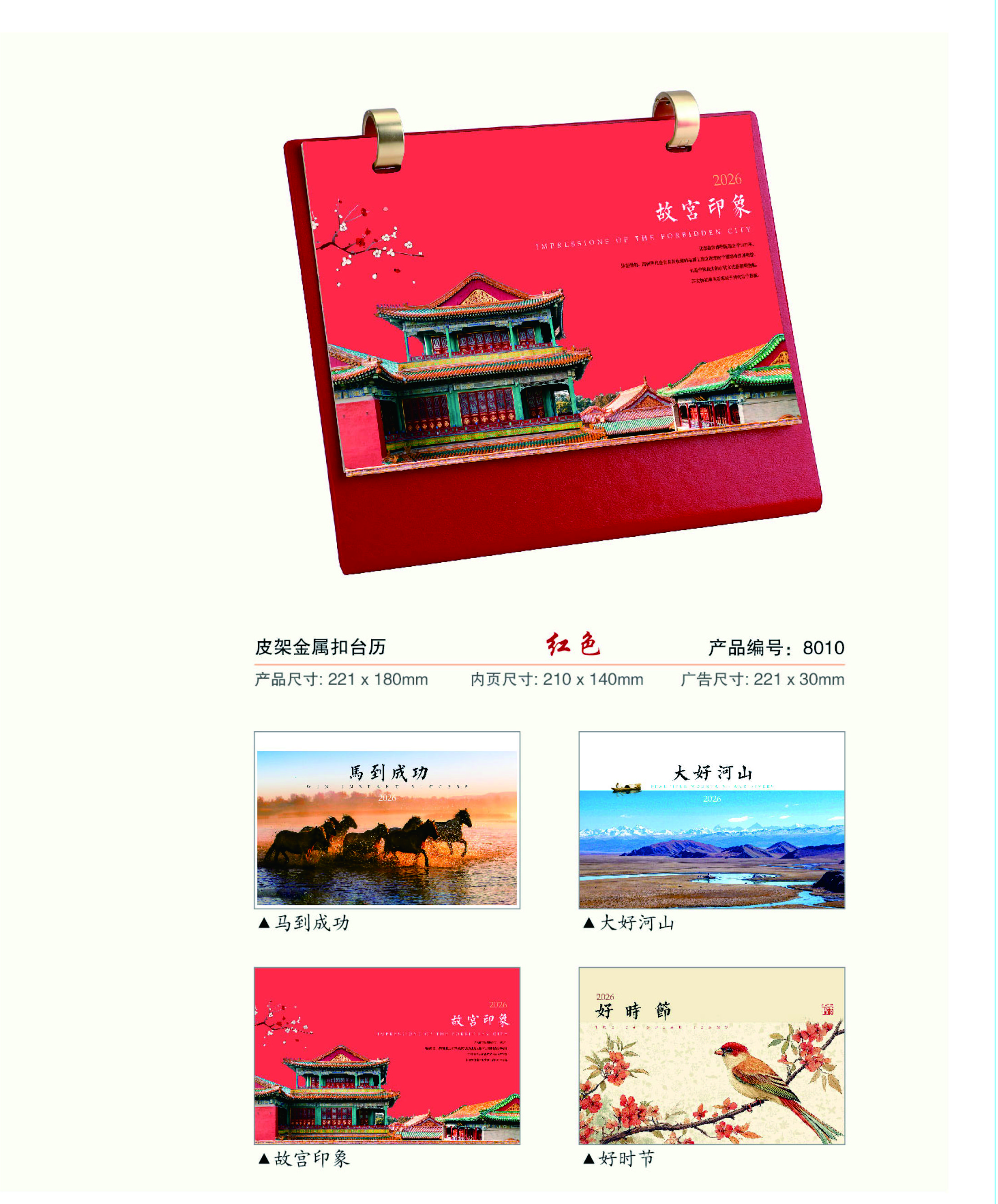 皮架金属扣台历-红色