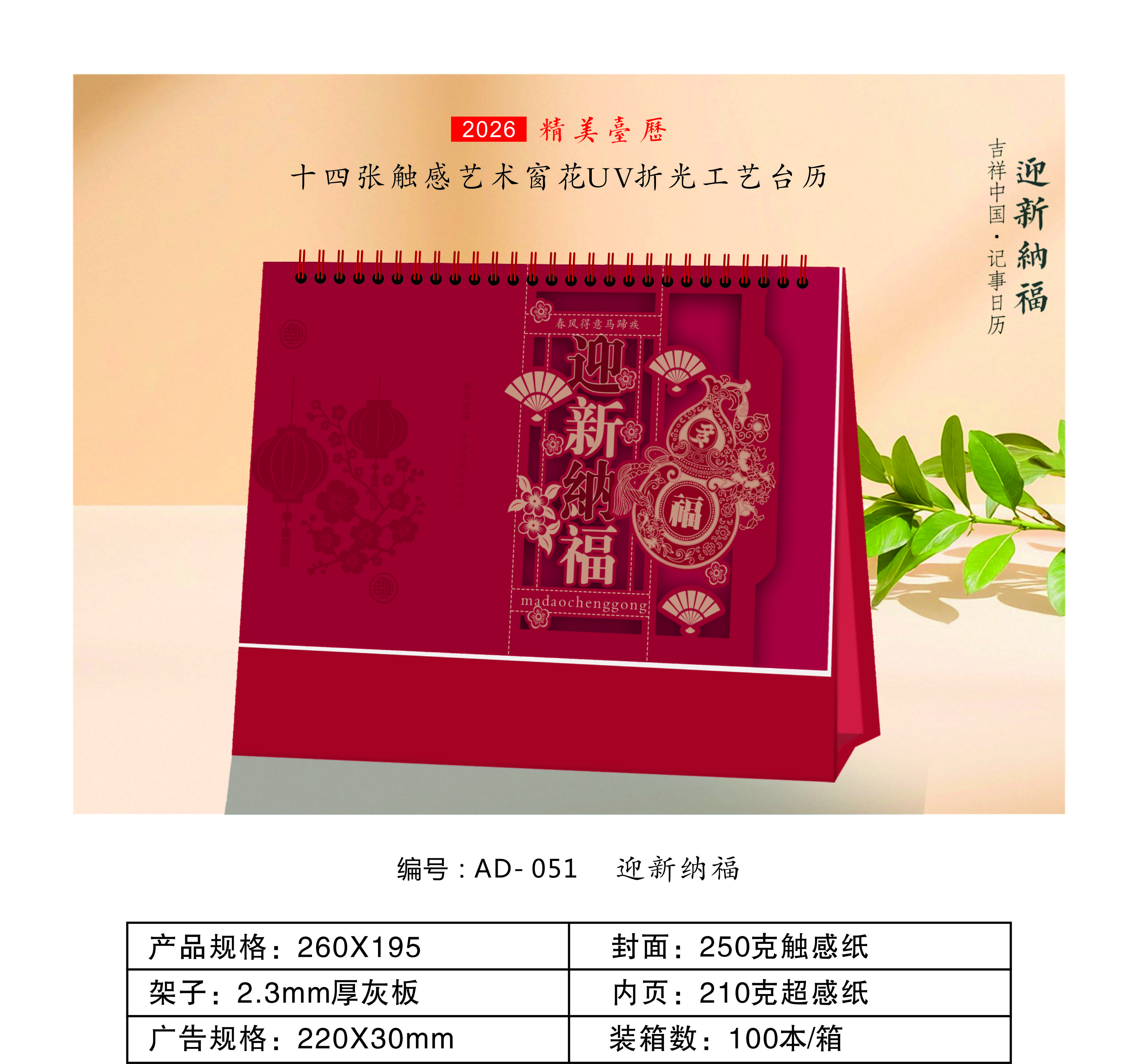 十四张触感艺术窗花UV折光工艺台历-迎新纳福