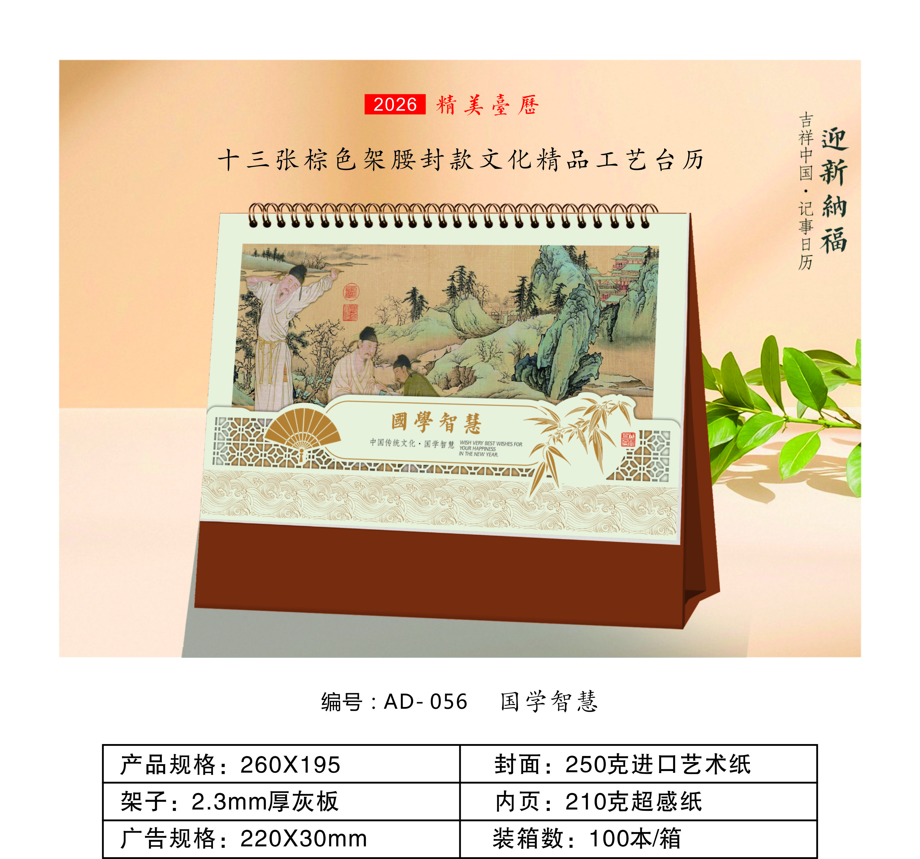 十三张棕色架腰封款文化精品工艺台历-国学智慧