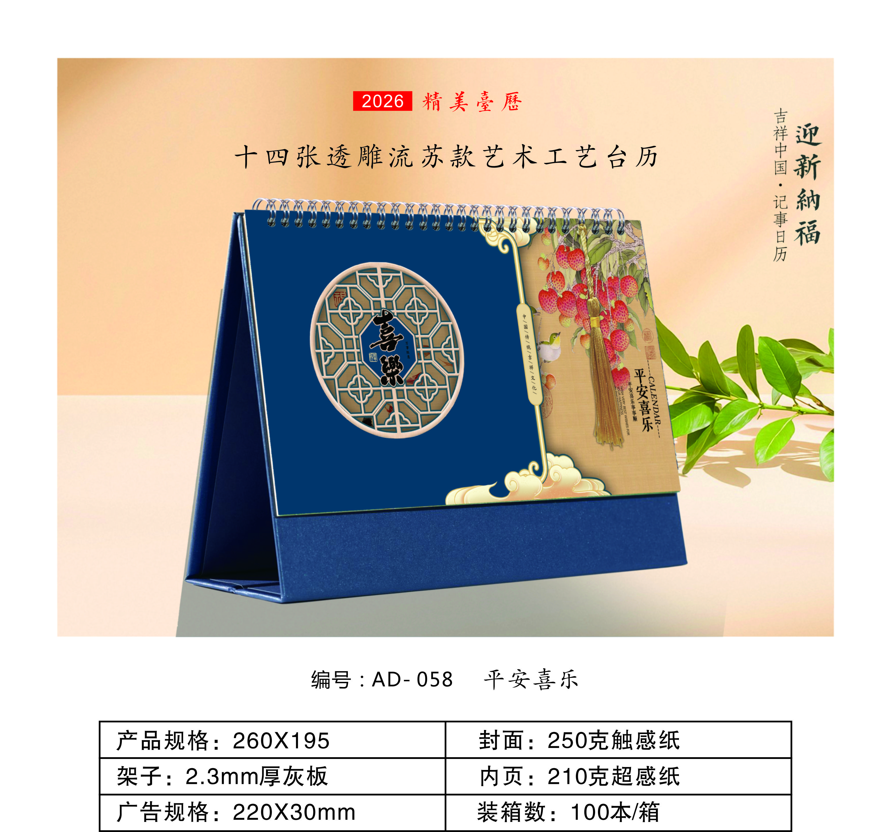 十四张透雕流苏款艺术工艺台历-平安喜乐