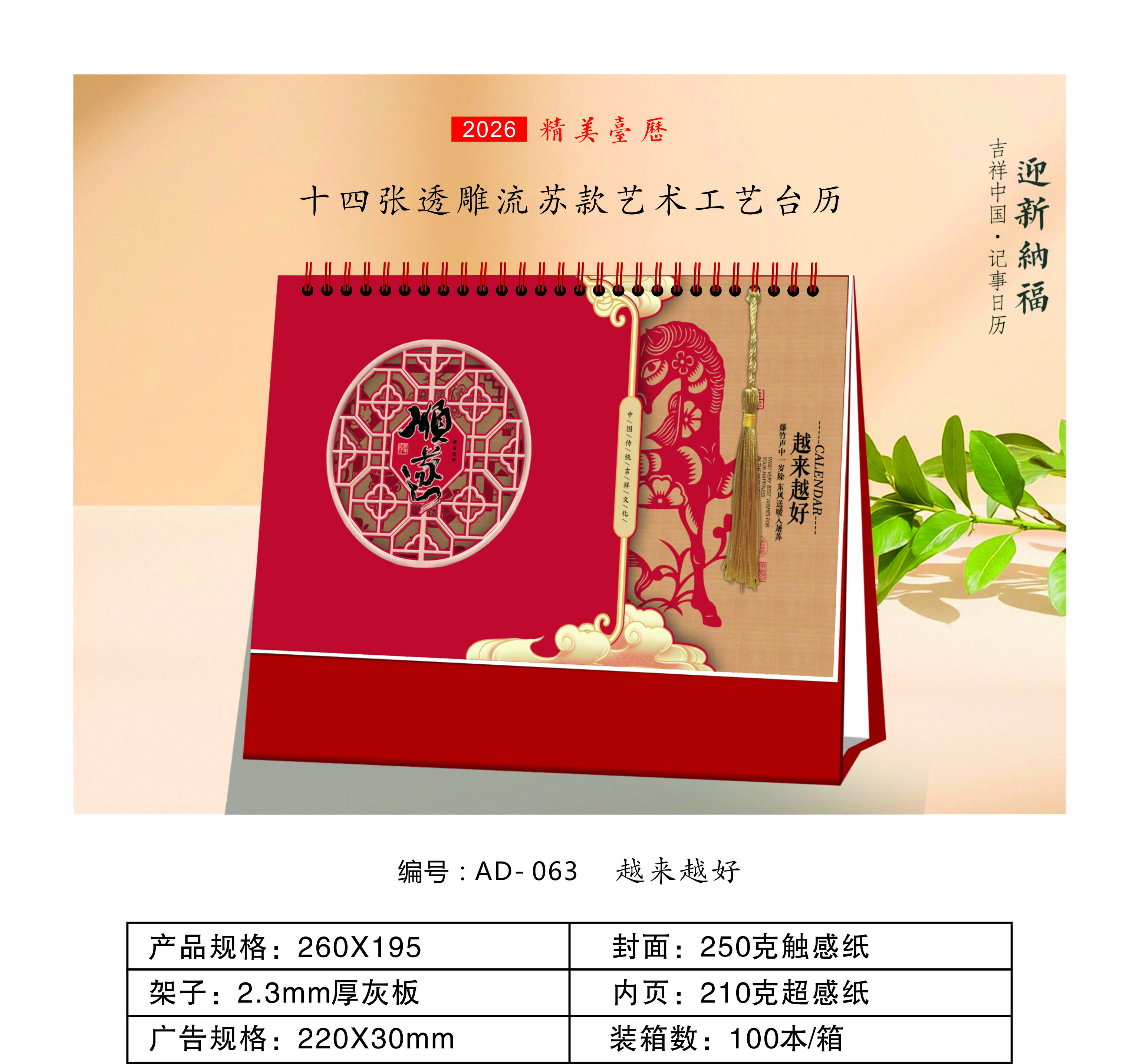 十四张透雕流苏款艺术工艺台历-越来越好