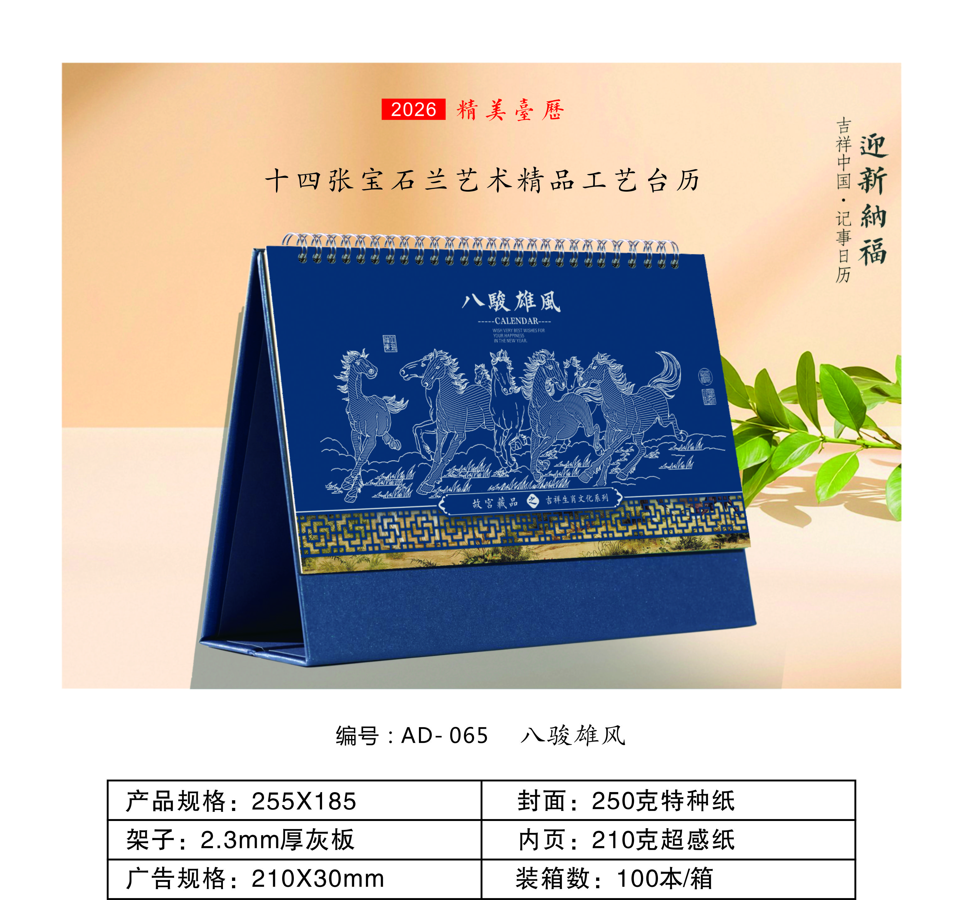 十四张宝石兰艺术精品工艺台历-八骏雄风