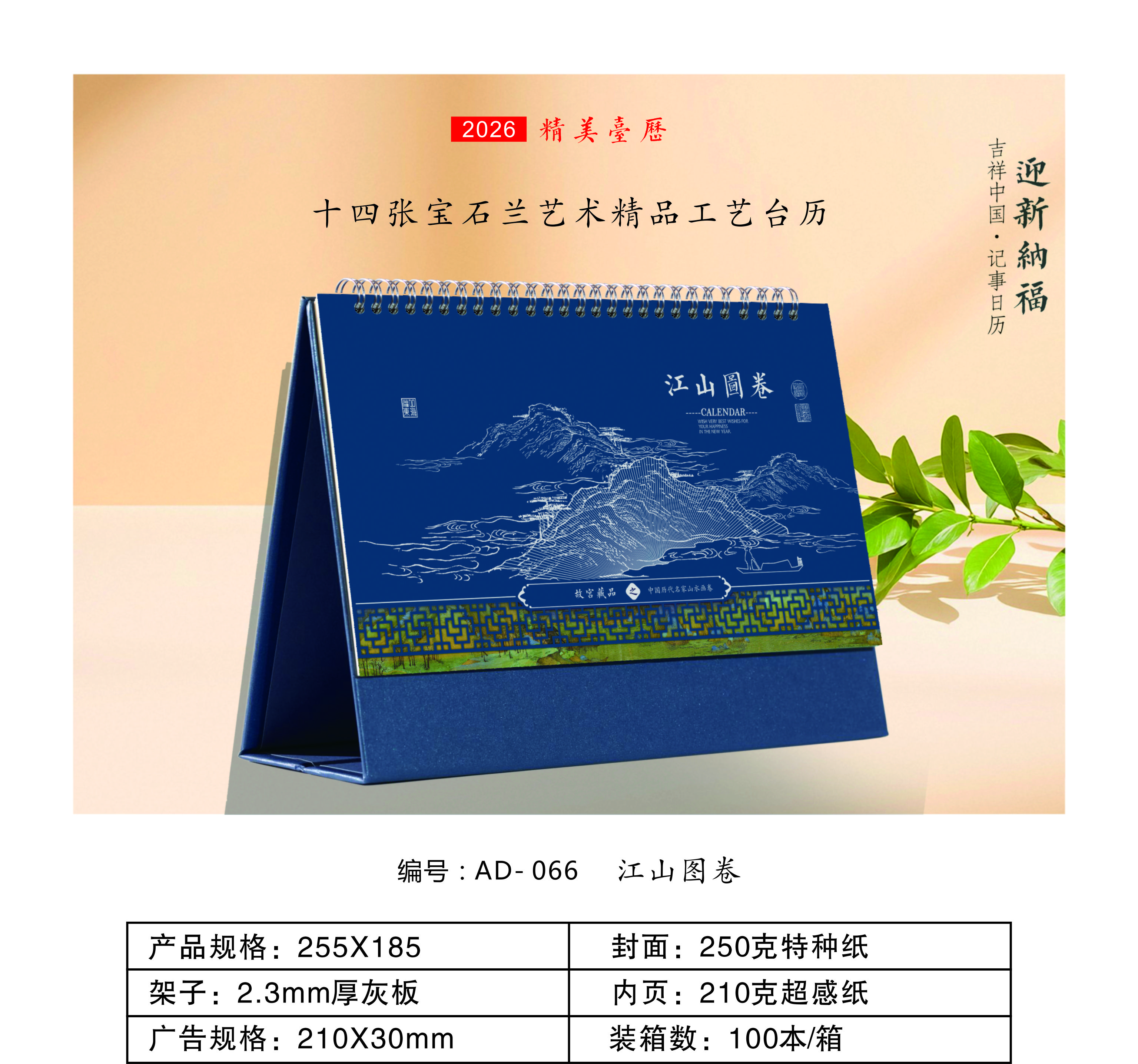 十四张宝石兰艺术精品工艺台历-江山图卷