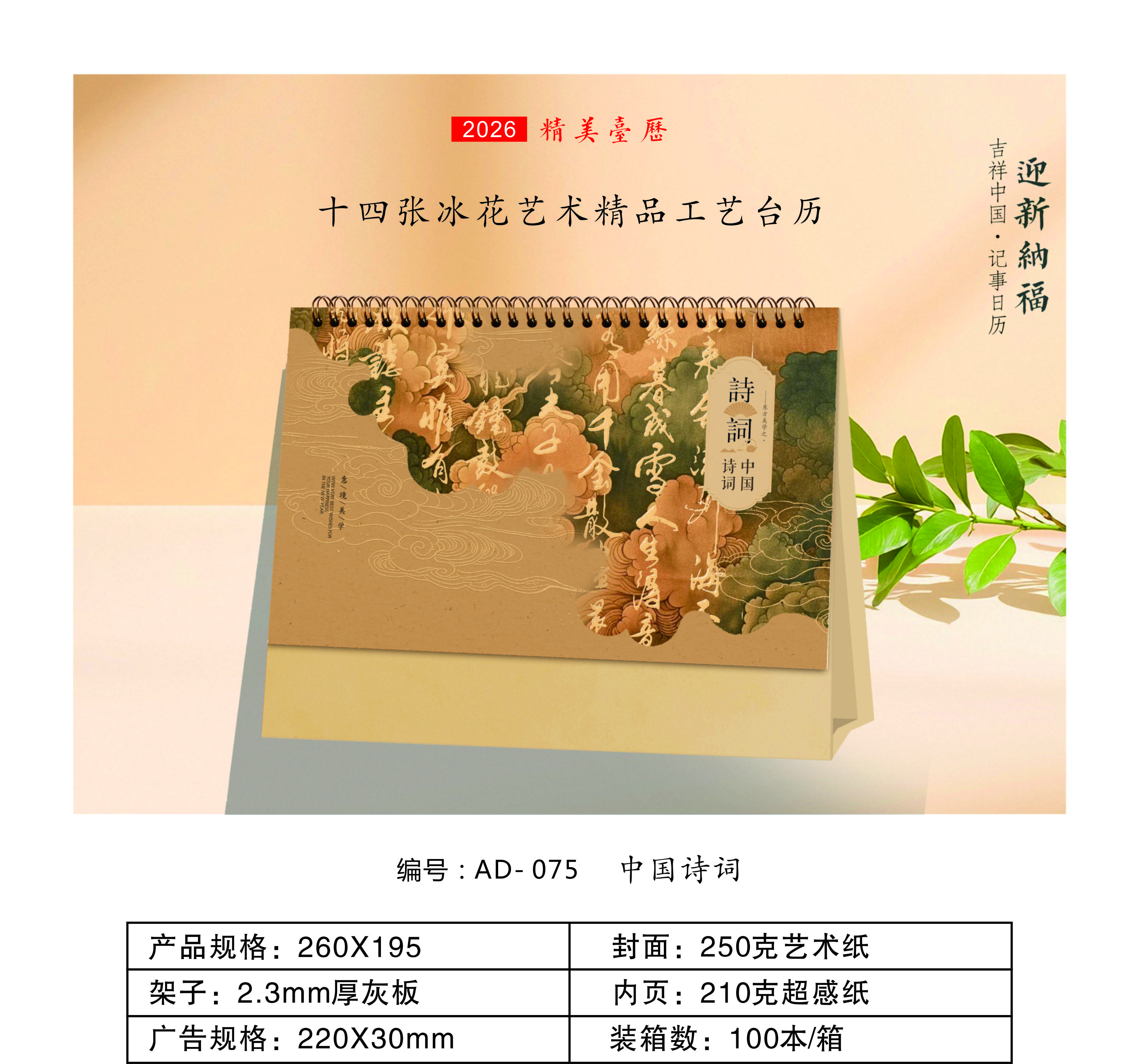十四张冰花艺术文化精品工艺台历-中国诗词