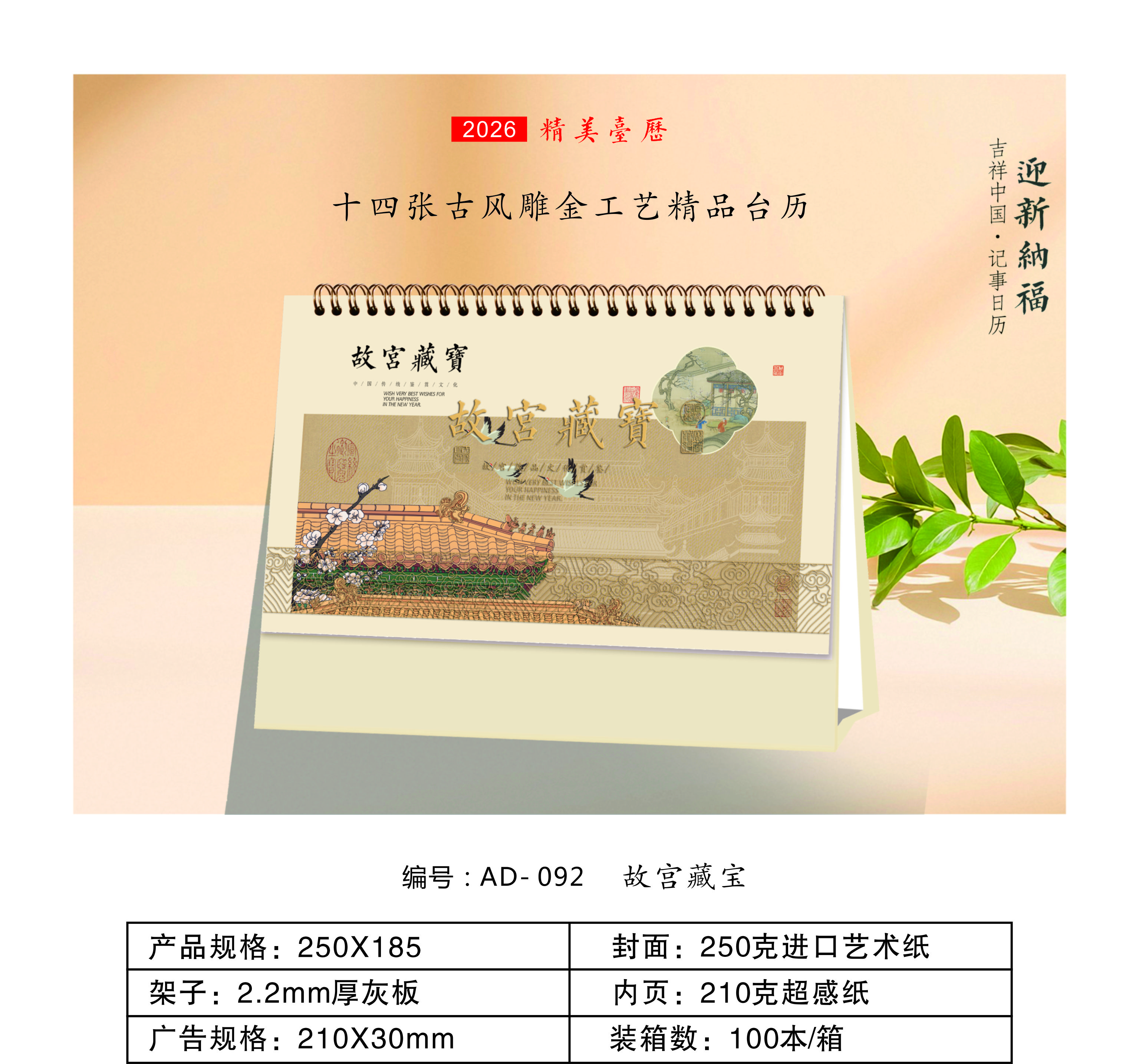 十四张古风雕金布艺台历-故宫藏宝