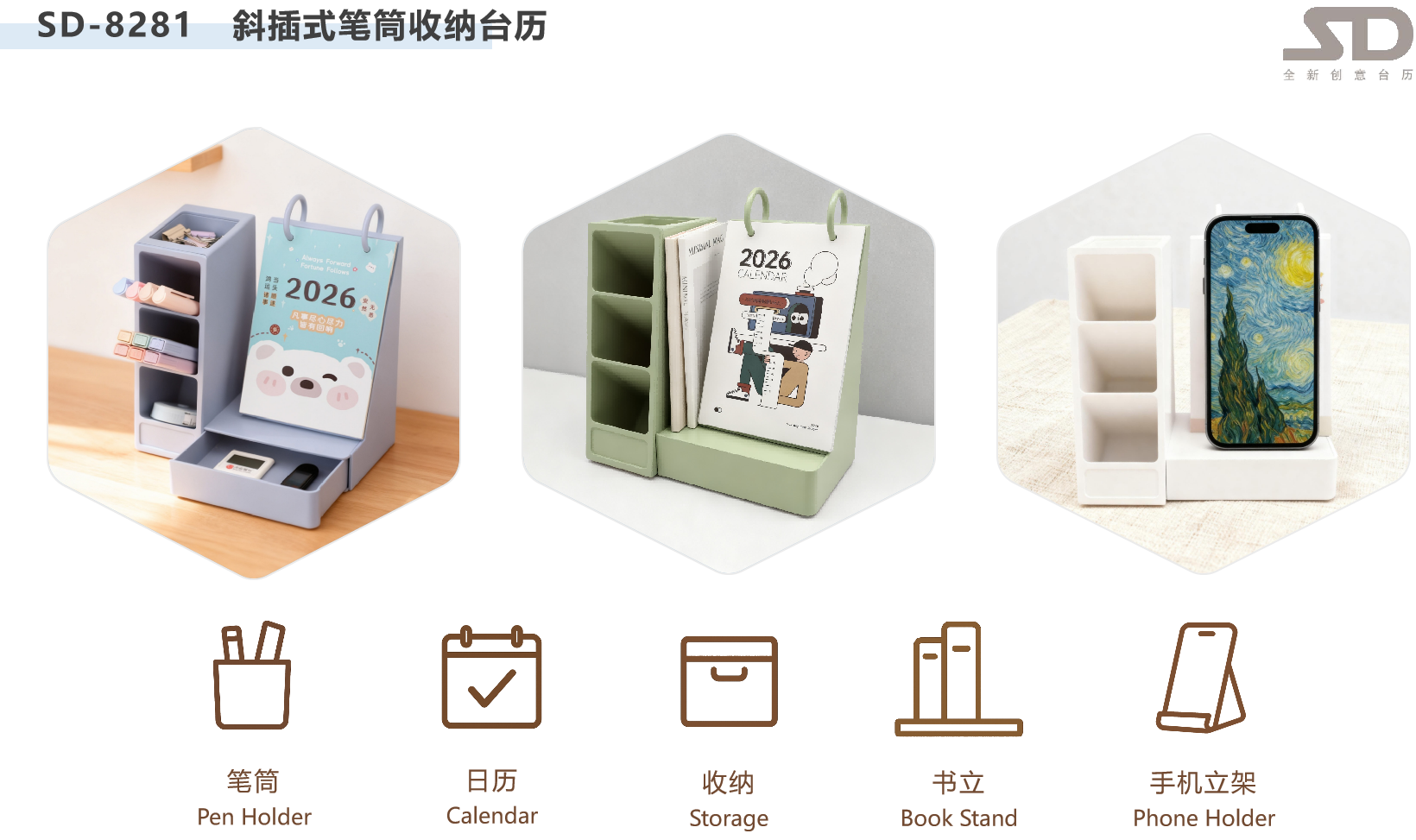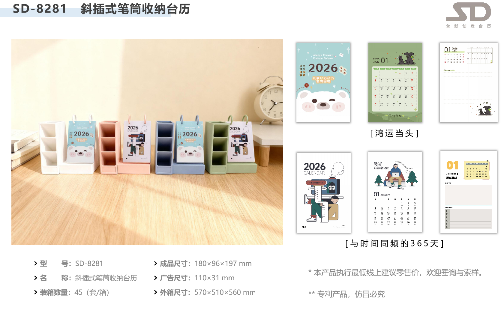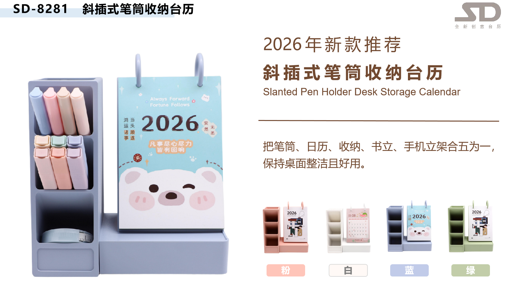 斜插式笔筒收纳台历-鸿运当头