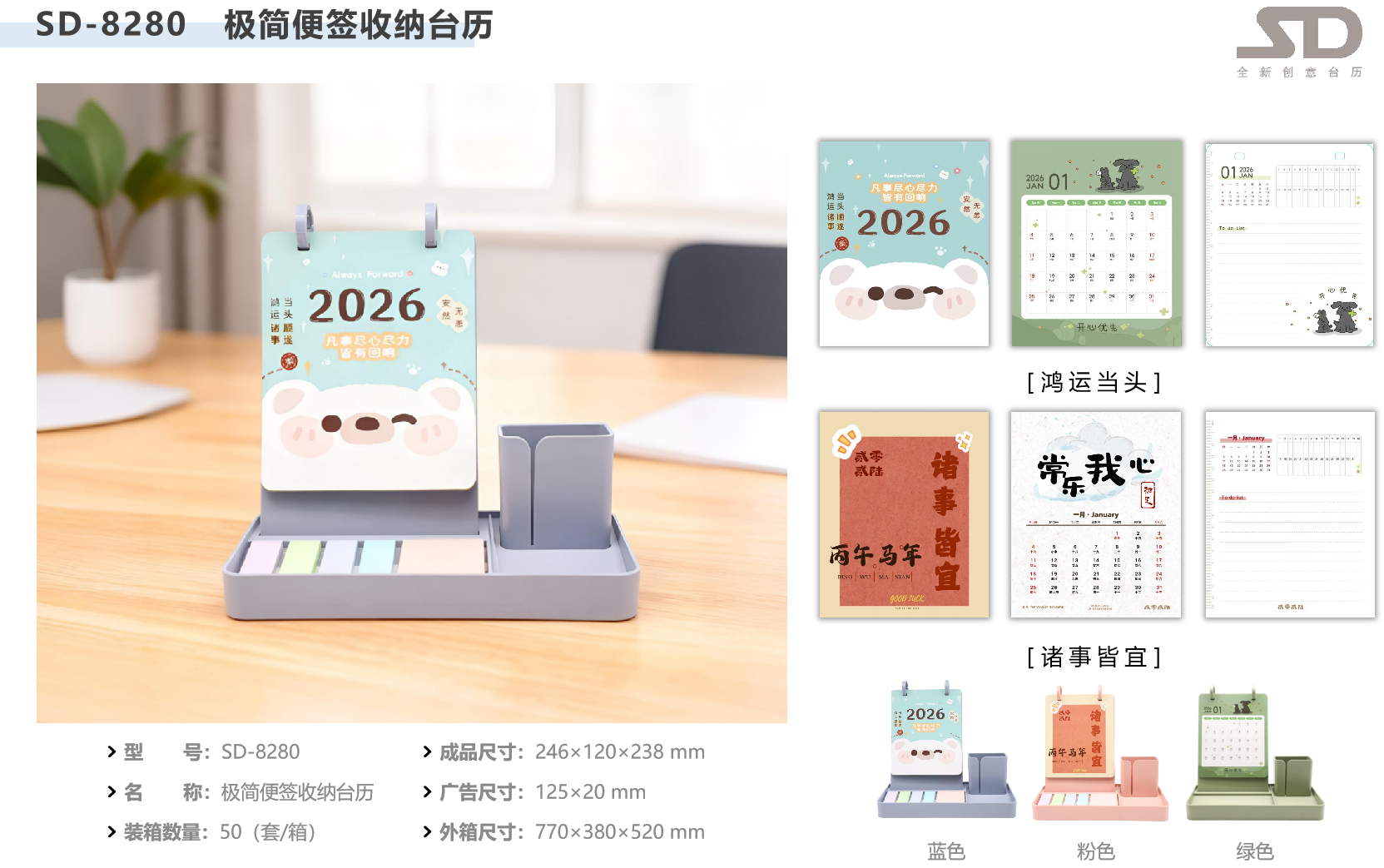 极简便签收纳台历-鸿运当头