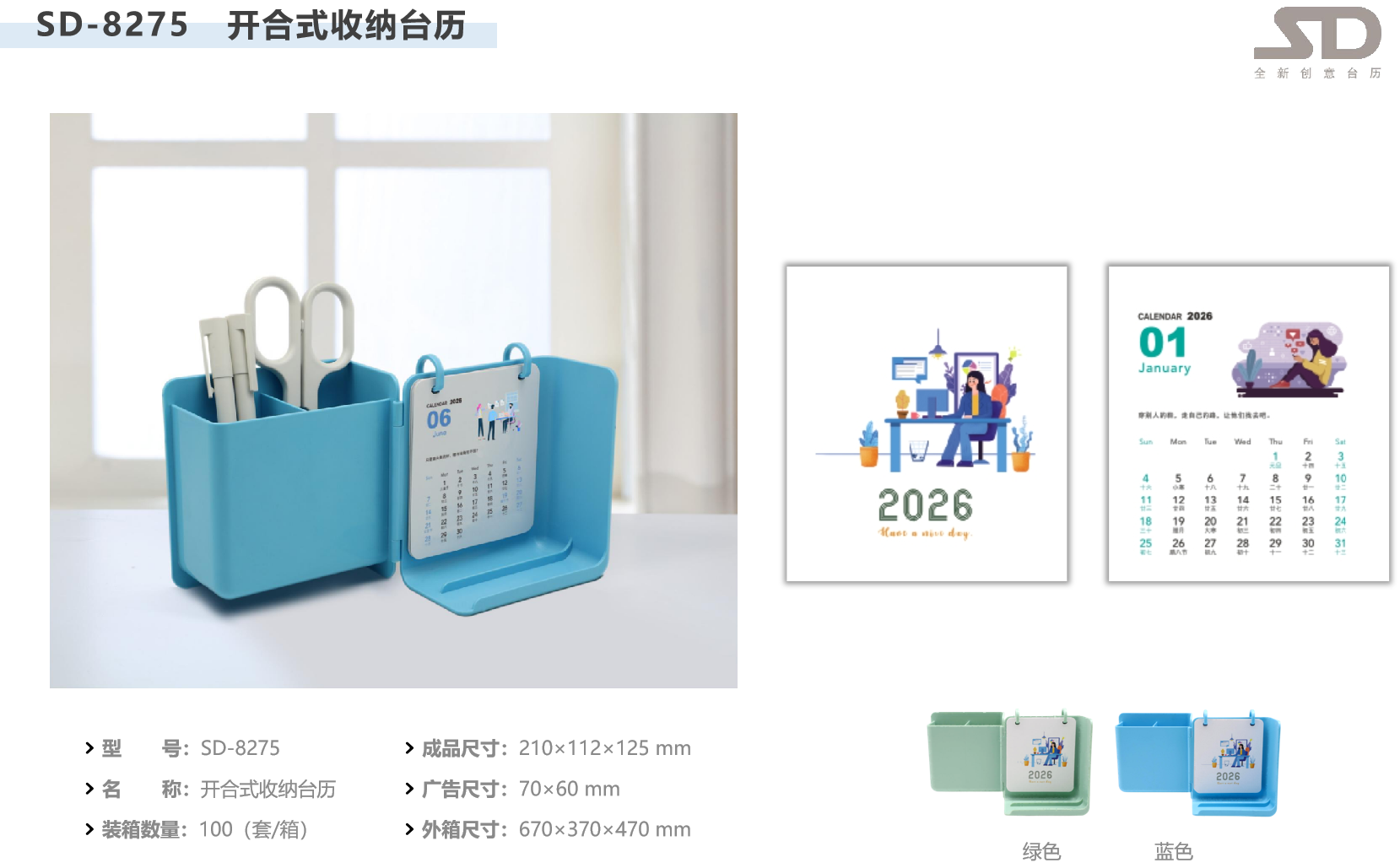 开合式收纳台历-2026