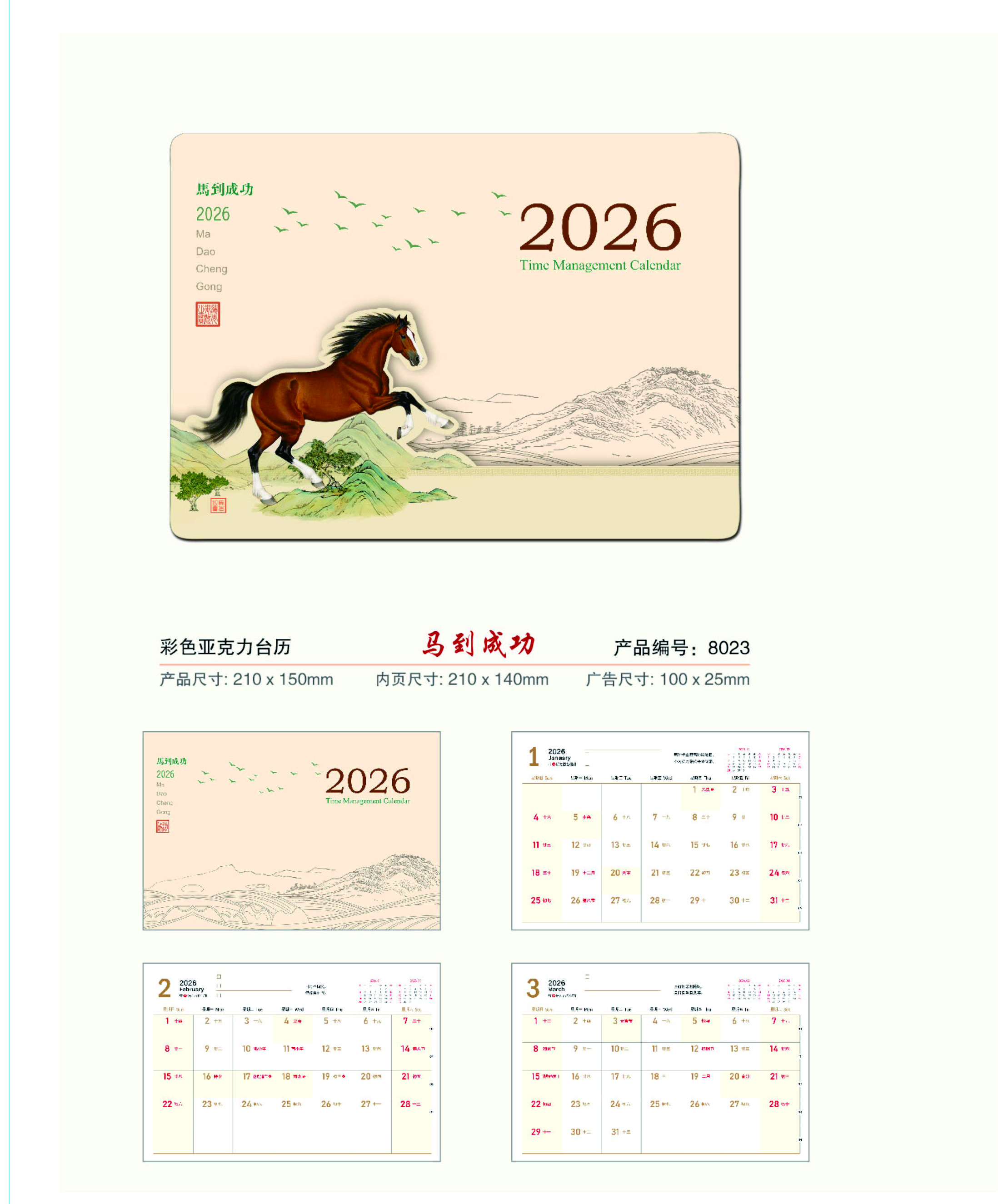 彩色亚克力台历-马到成功
