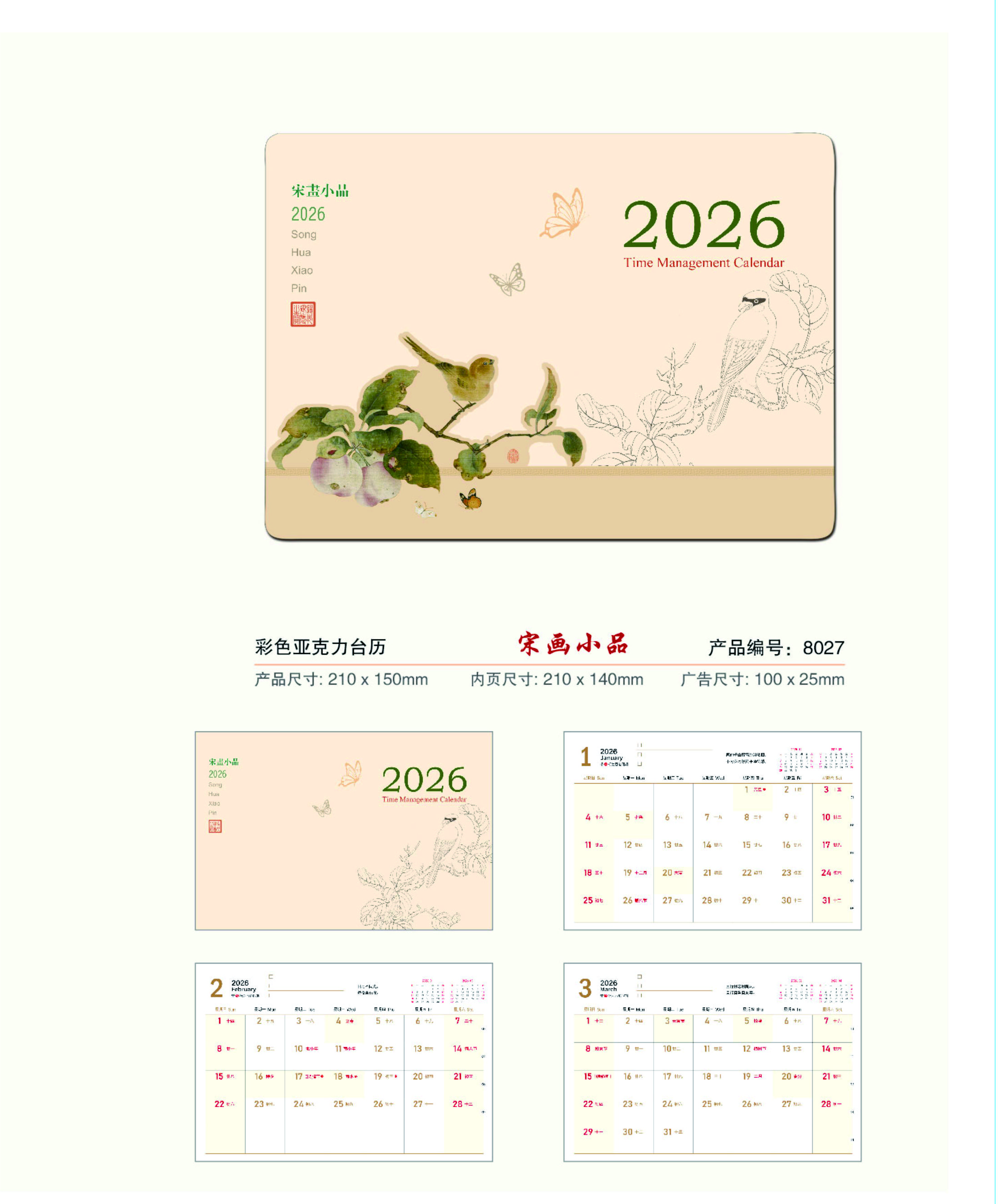 彩色亚克力台历-宋画小品