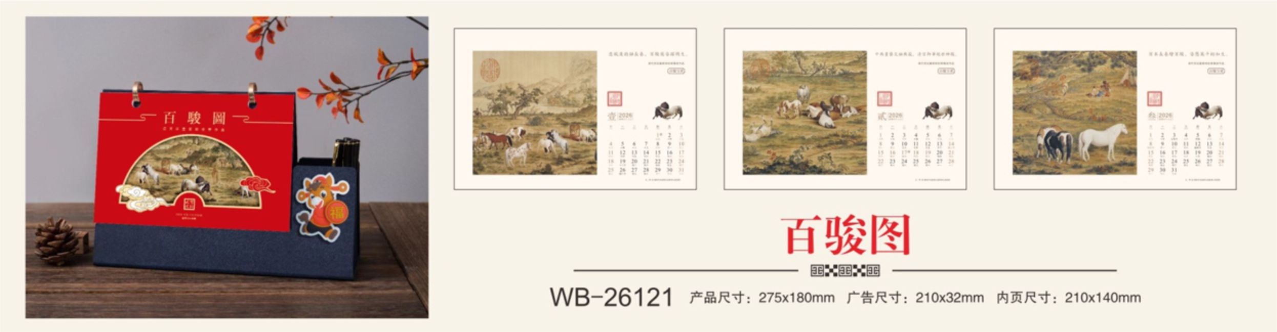 时尚皮质笔筒台历-百骏图