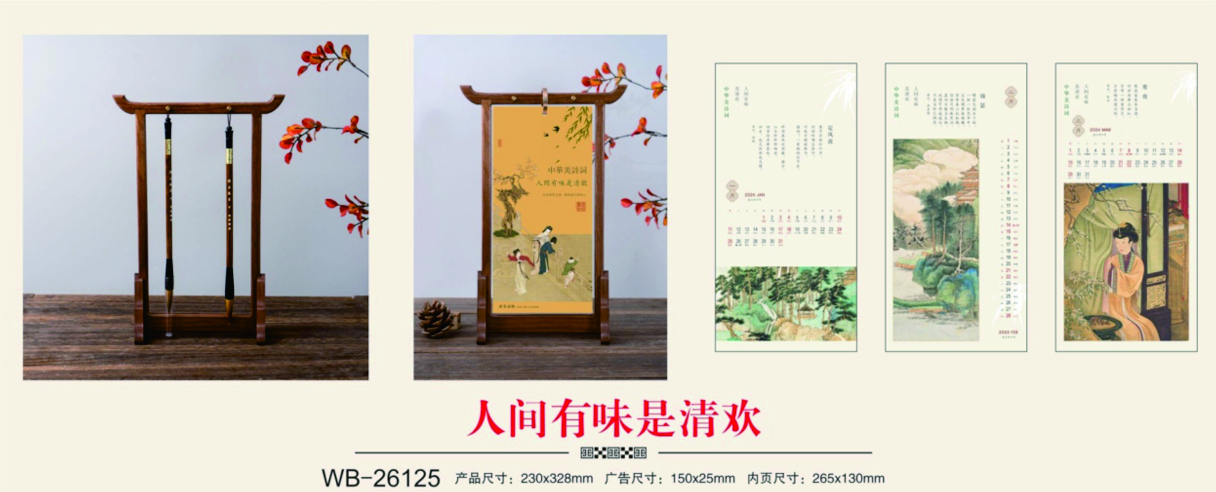 黑胡桃木笔屏文房台式月历-人间有味是清欢