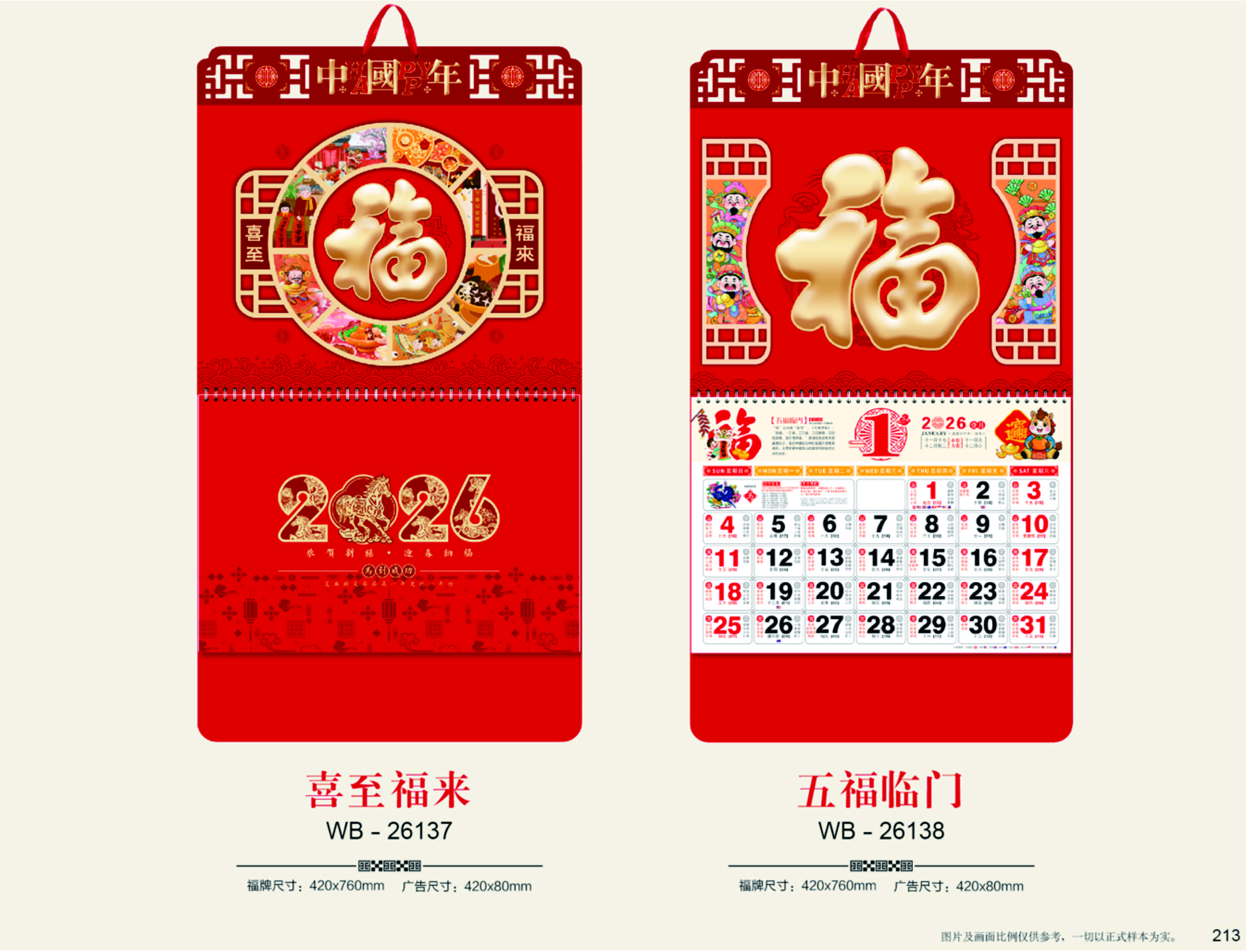 大六开触感精雕福牌(加封面)-喜至福来 -五福临门