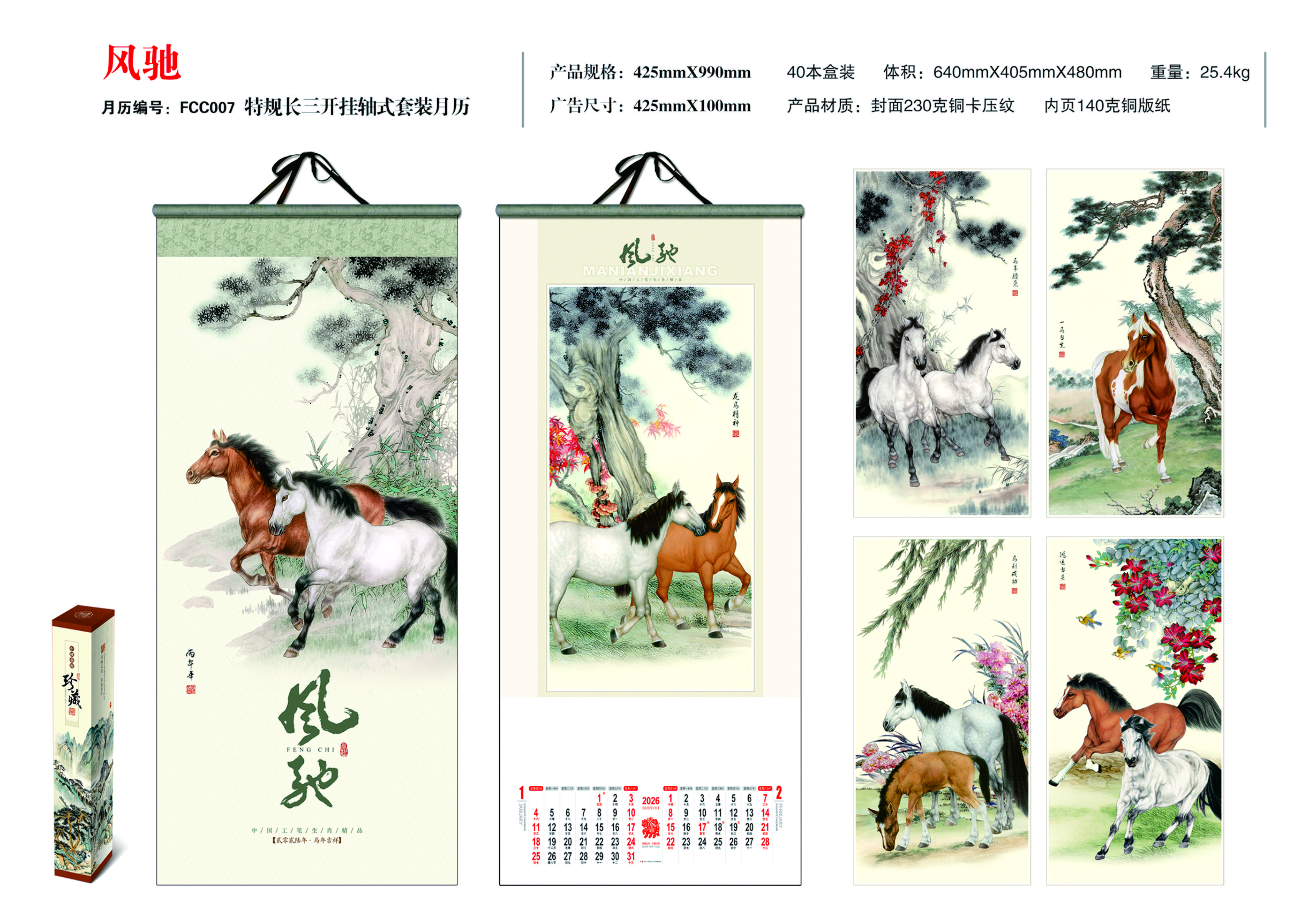特规长三开挂轴式套装月历-风驰