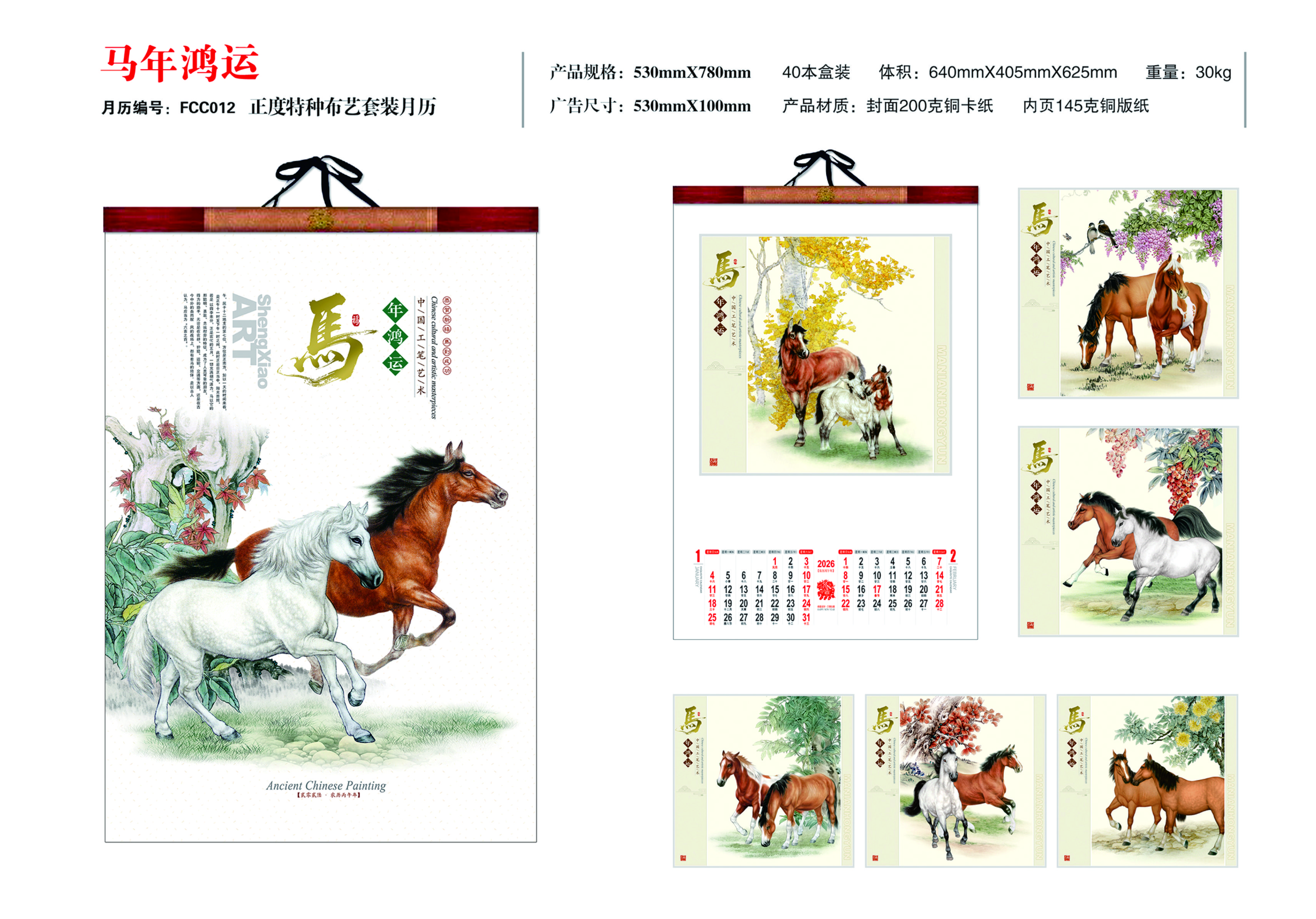 正度特种布艺套装月历-马年鸿运