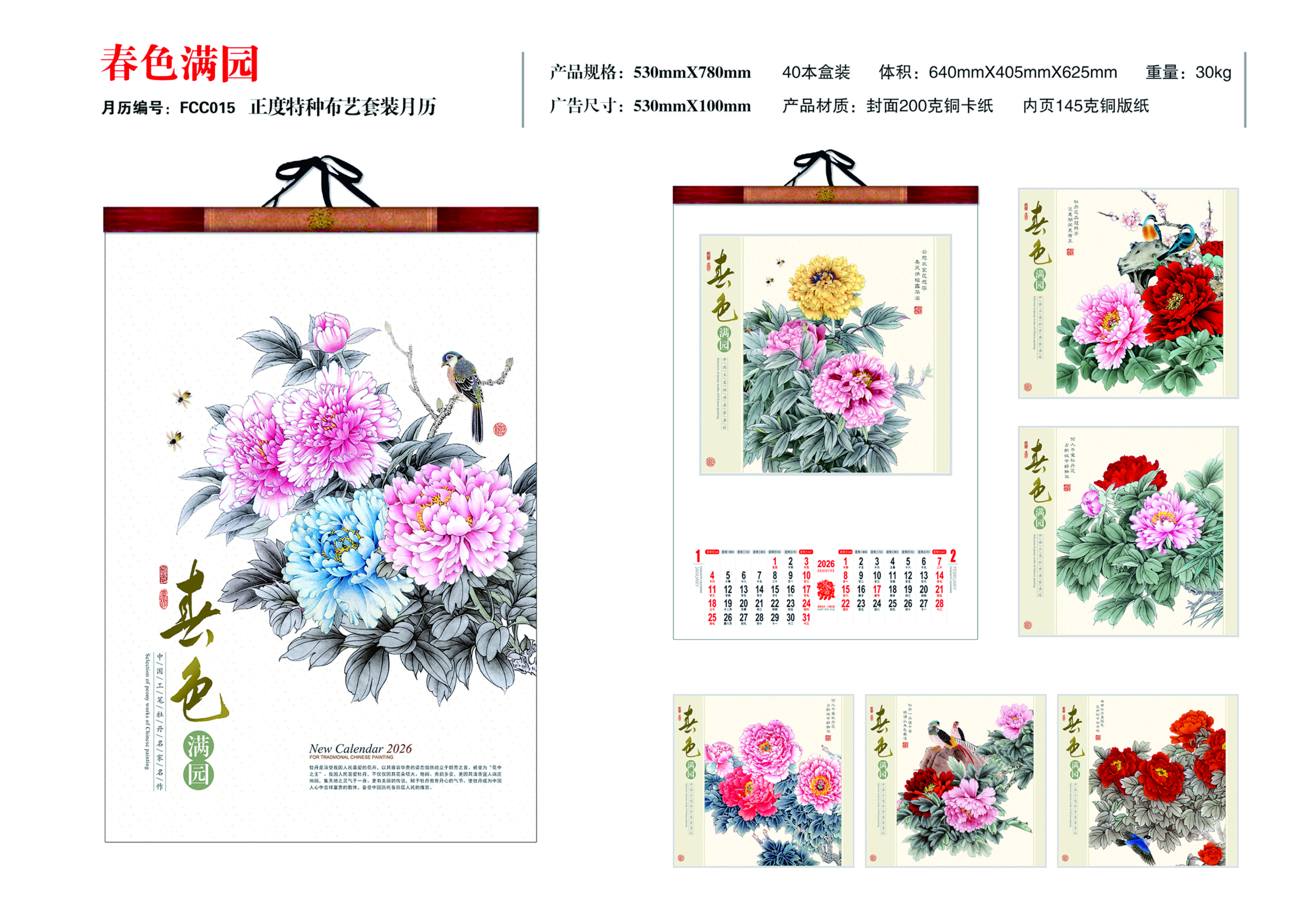 正度特种布艺套装月历-春色满园