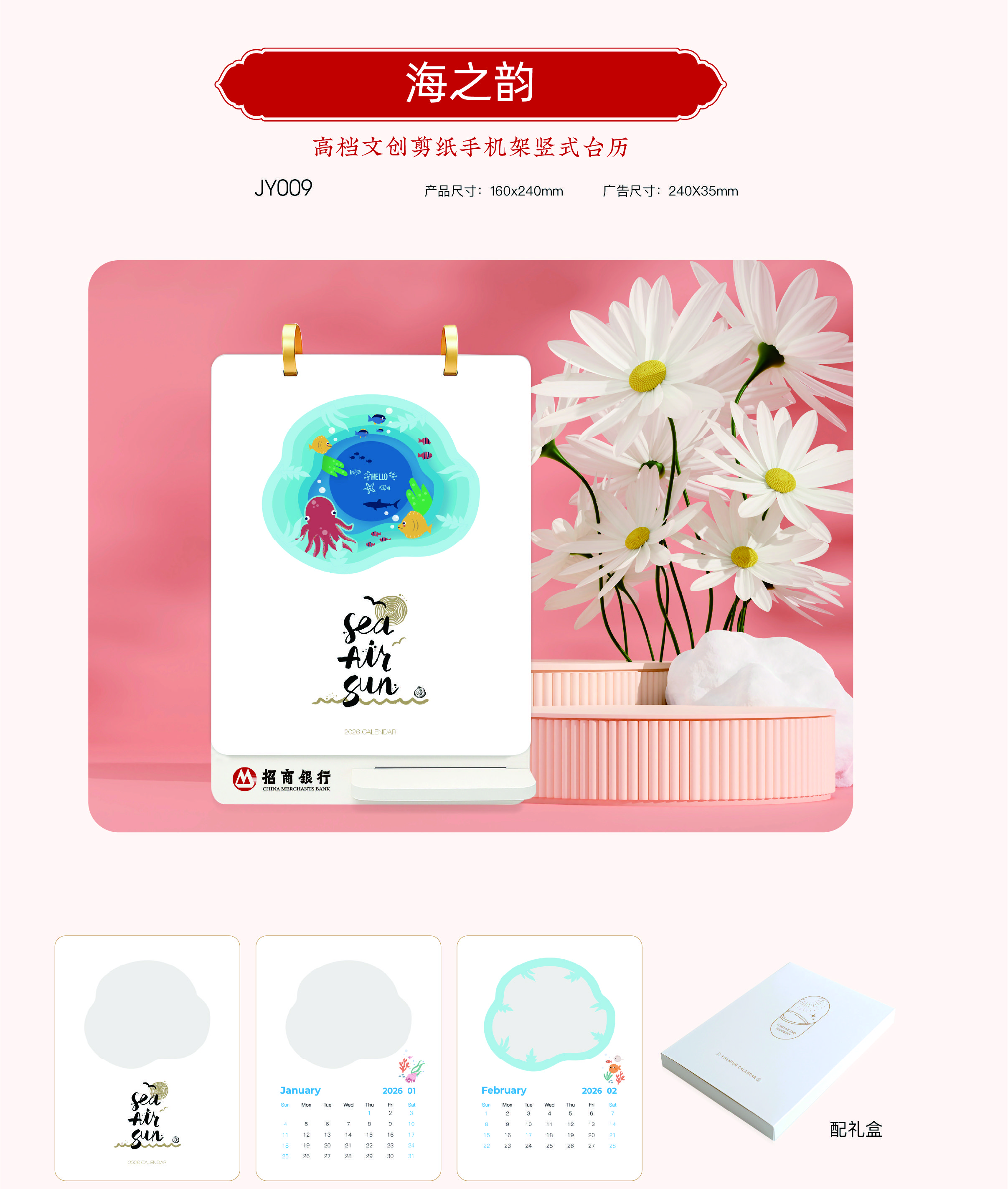 高档文创剪纸手机架竖式台历 - 海之韵