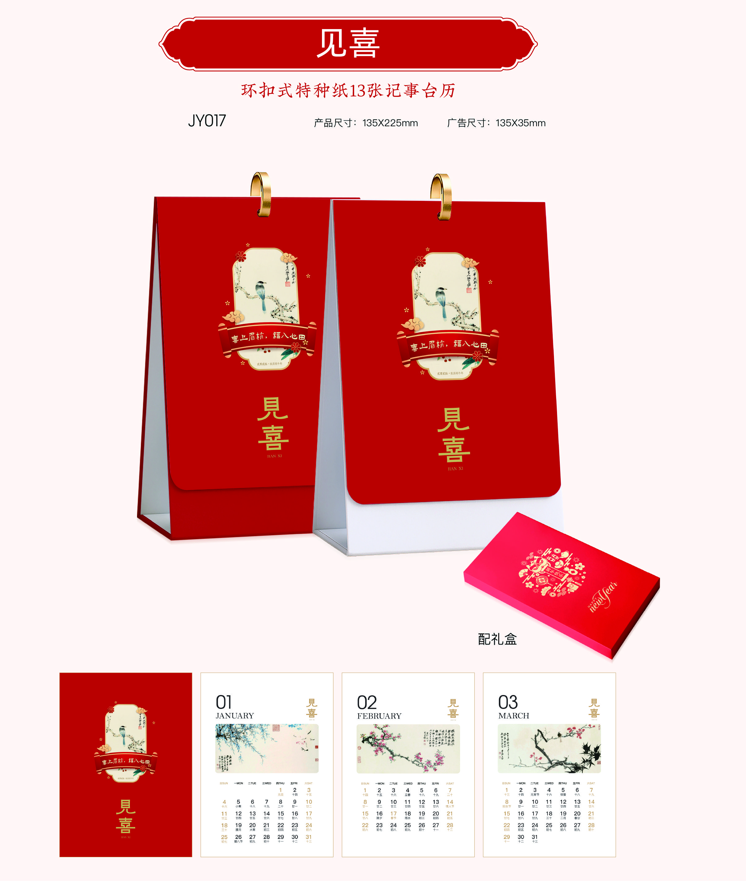 环扣式特种纸十三张记事台历 -见喜