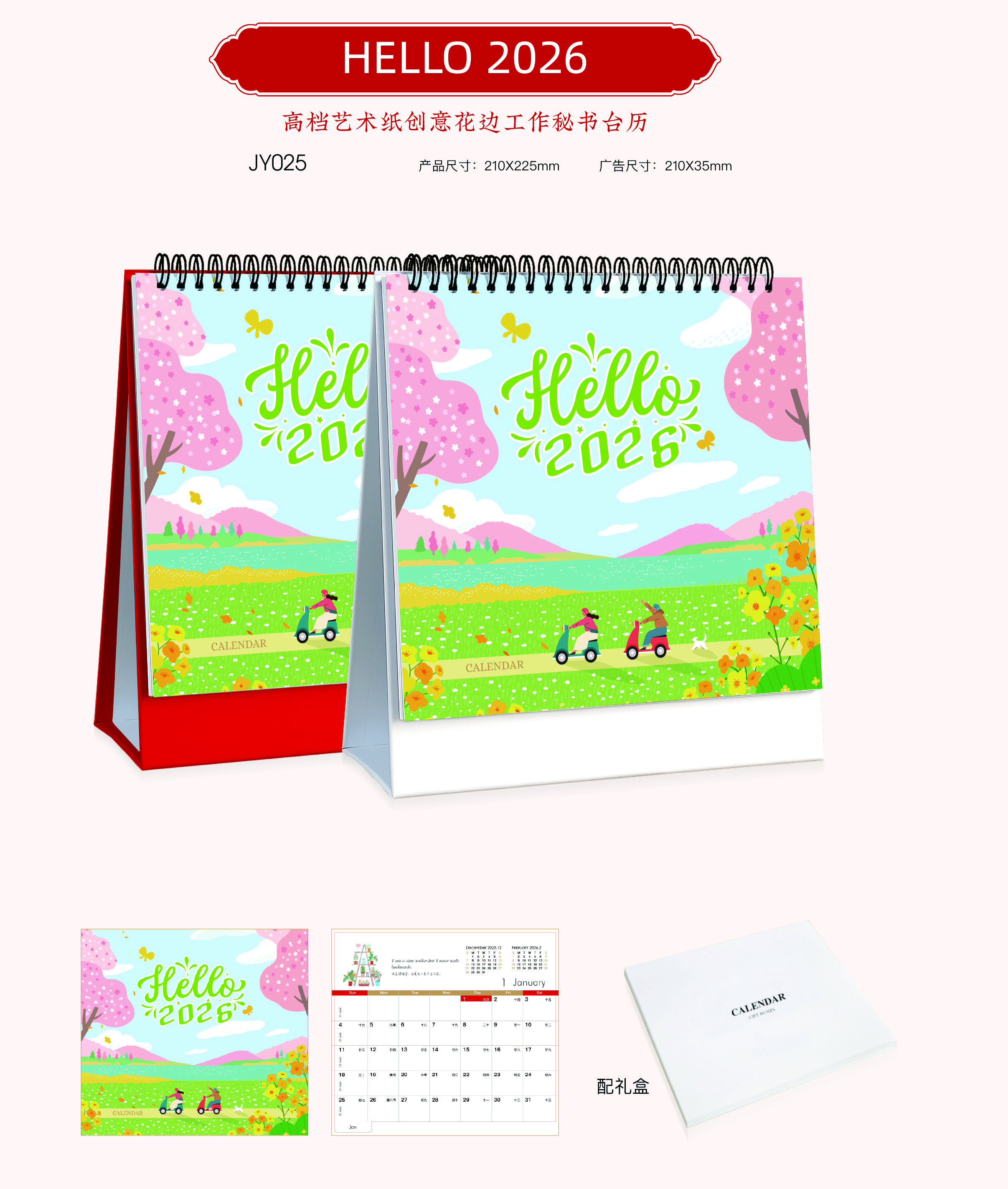 高档艺术纸创意花边工作秘书台历 -HELL 2026