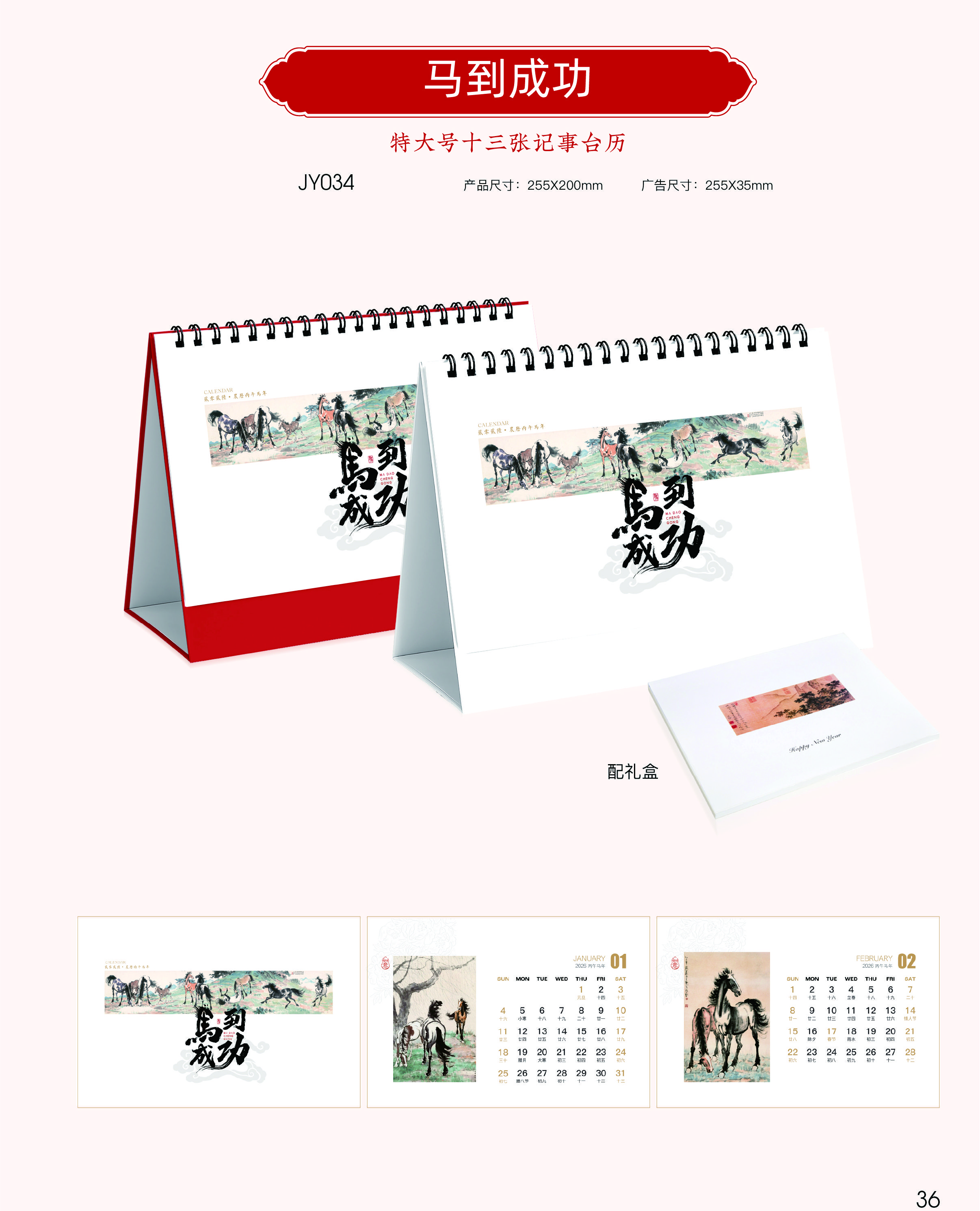特大号十三张记事台历 -马到成功