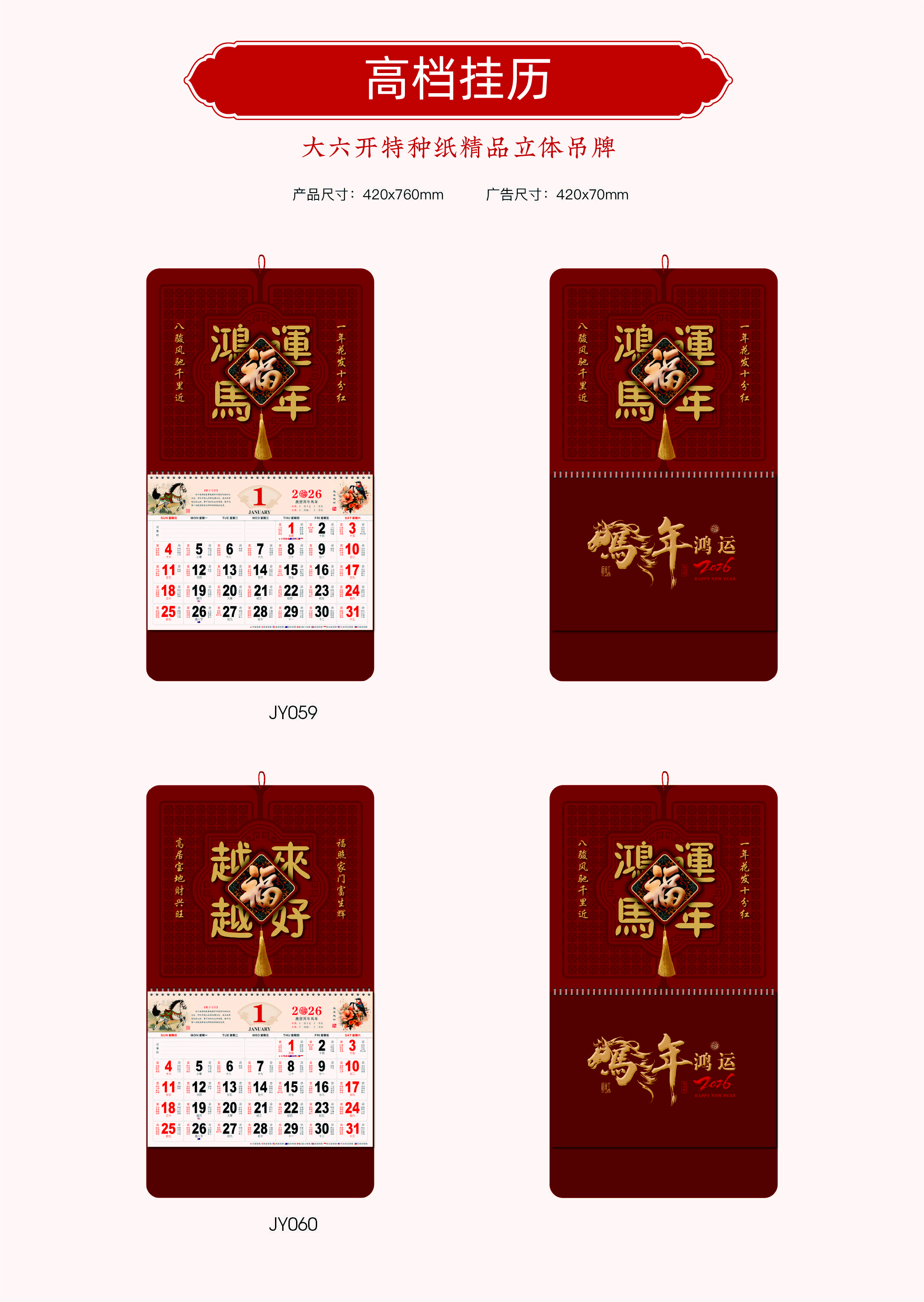 大六开触感红双色金镂空工艺福牌 - 鸿运马年