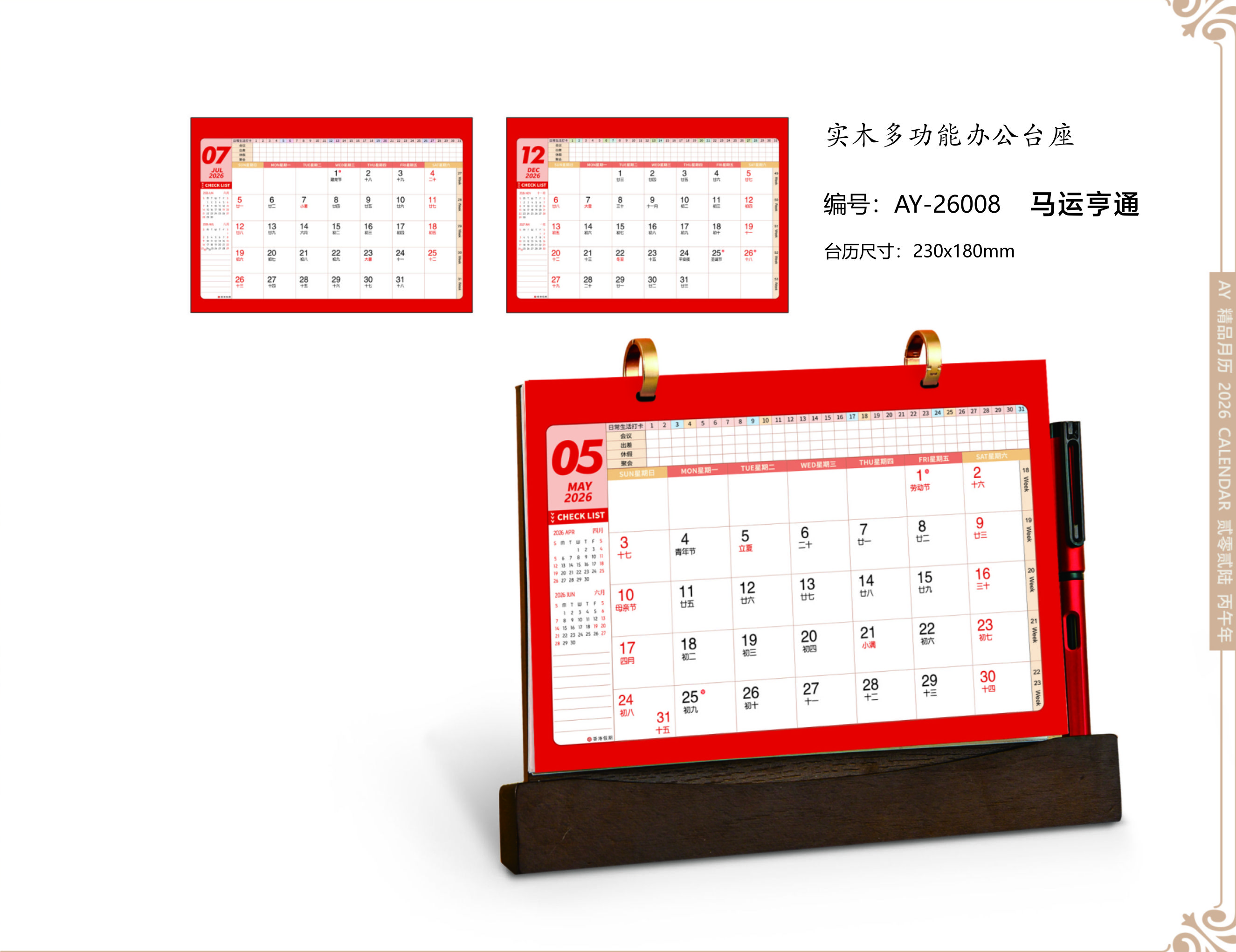 台历尺寸:230x180mm