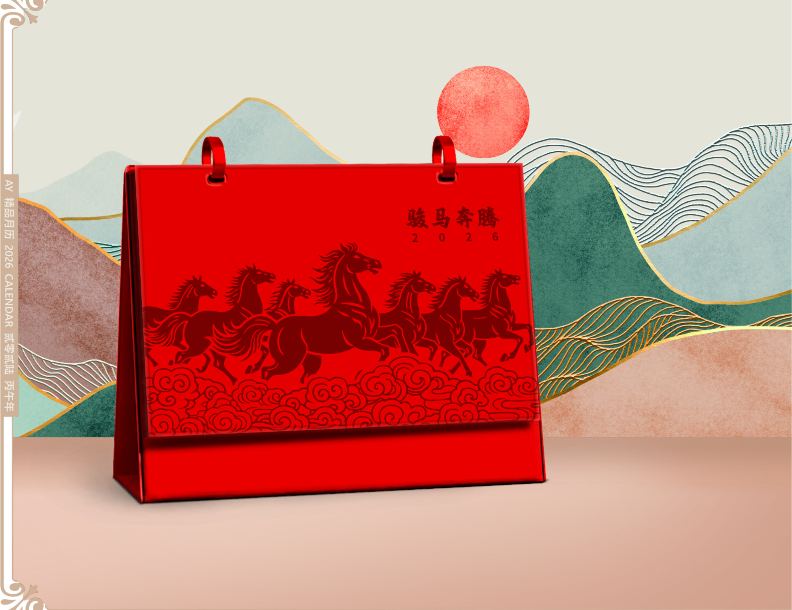 双环精美皮架台历-骏马奔腾