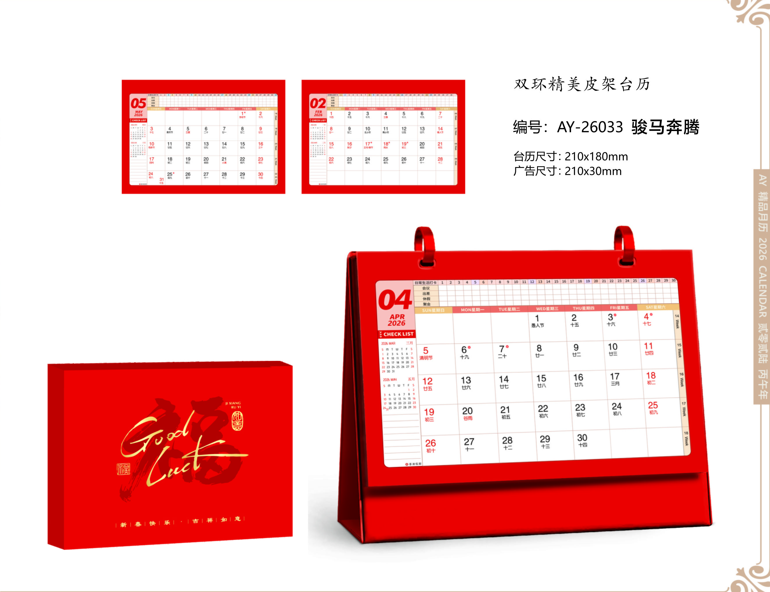 台历尺寸:210x180mm
