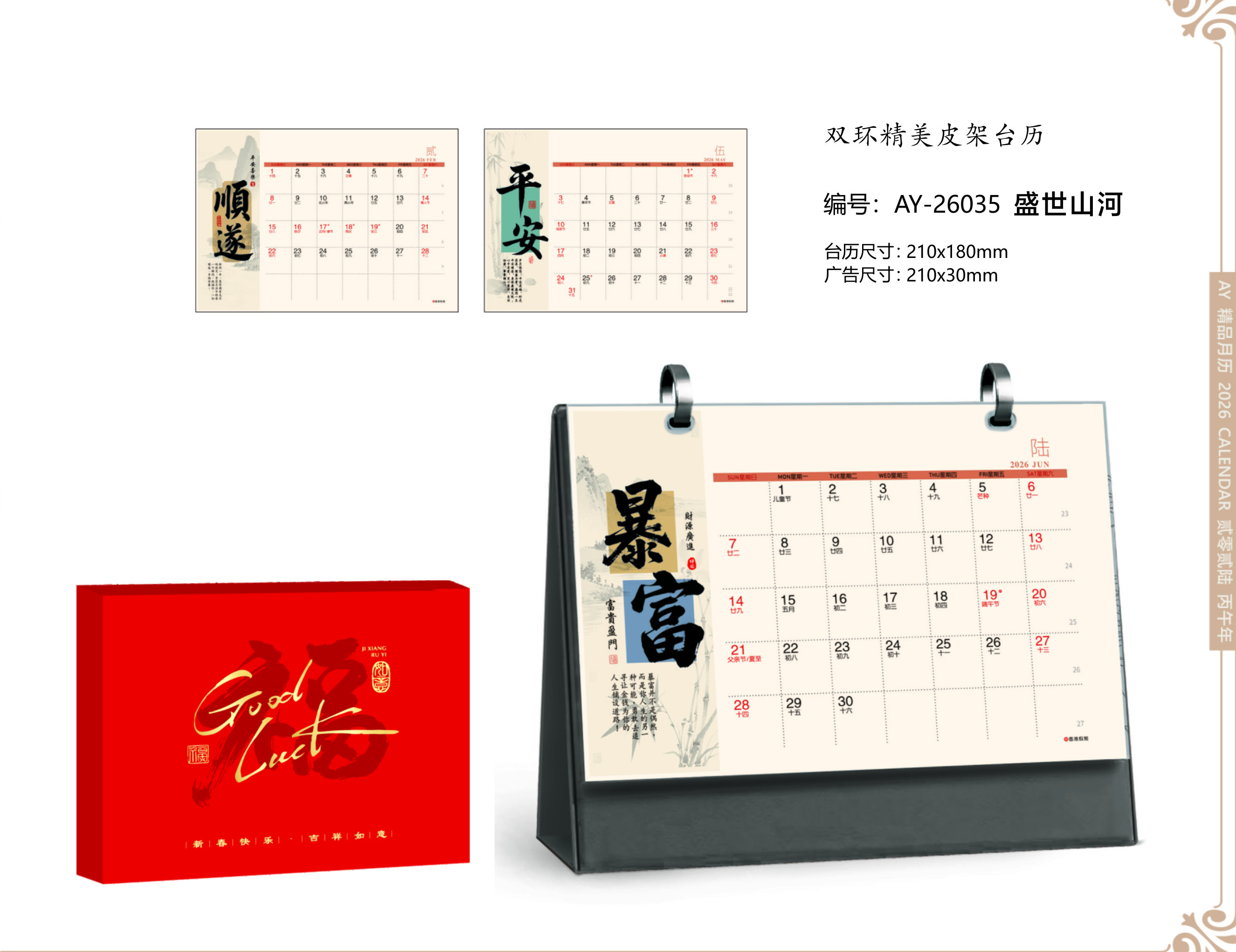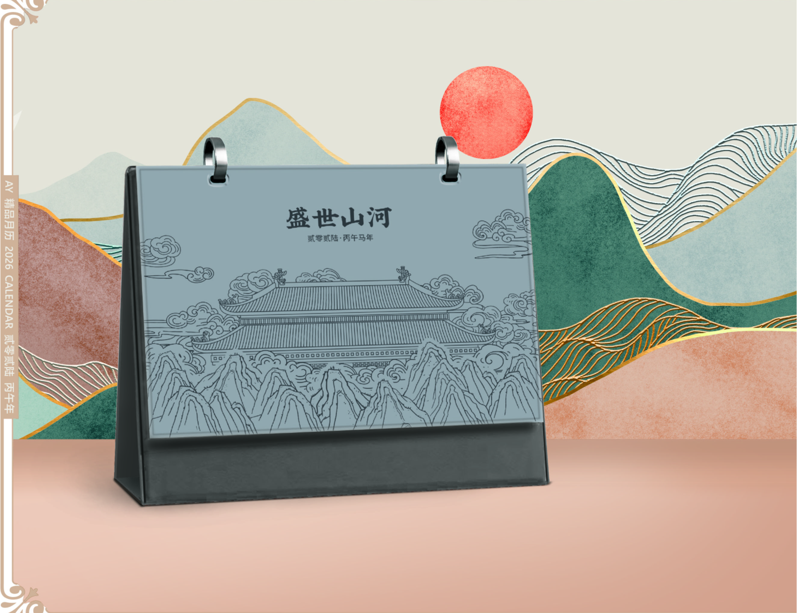 双环精美皮架台历-盛世山河