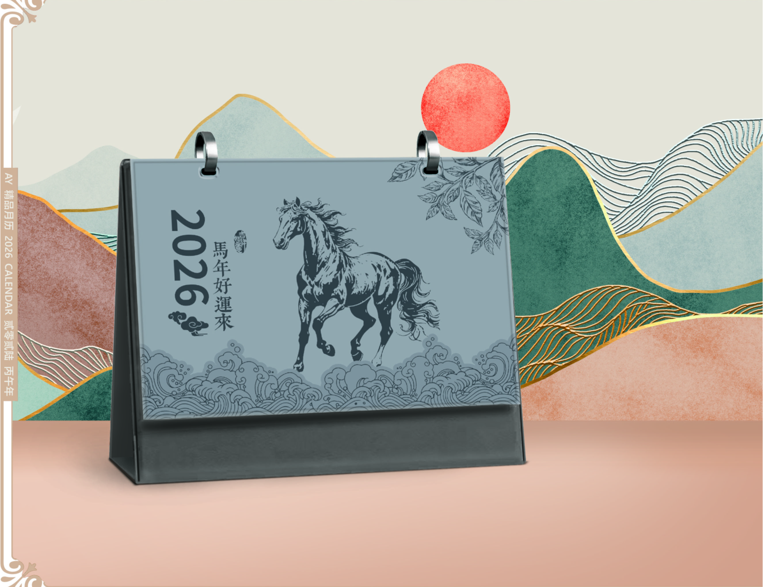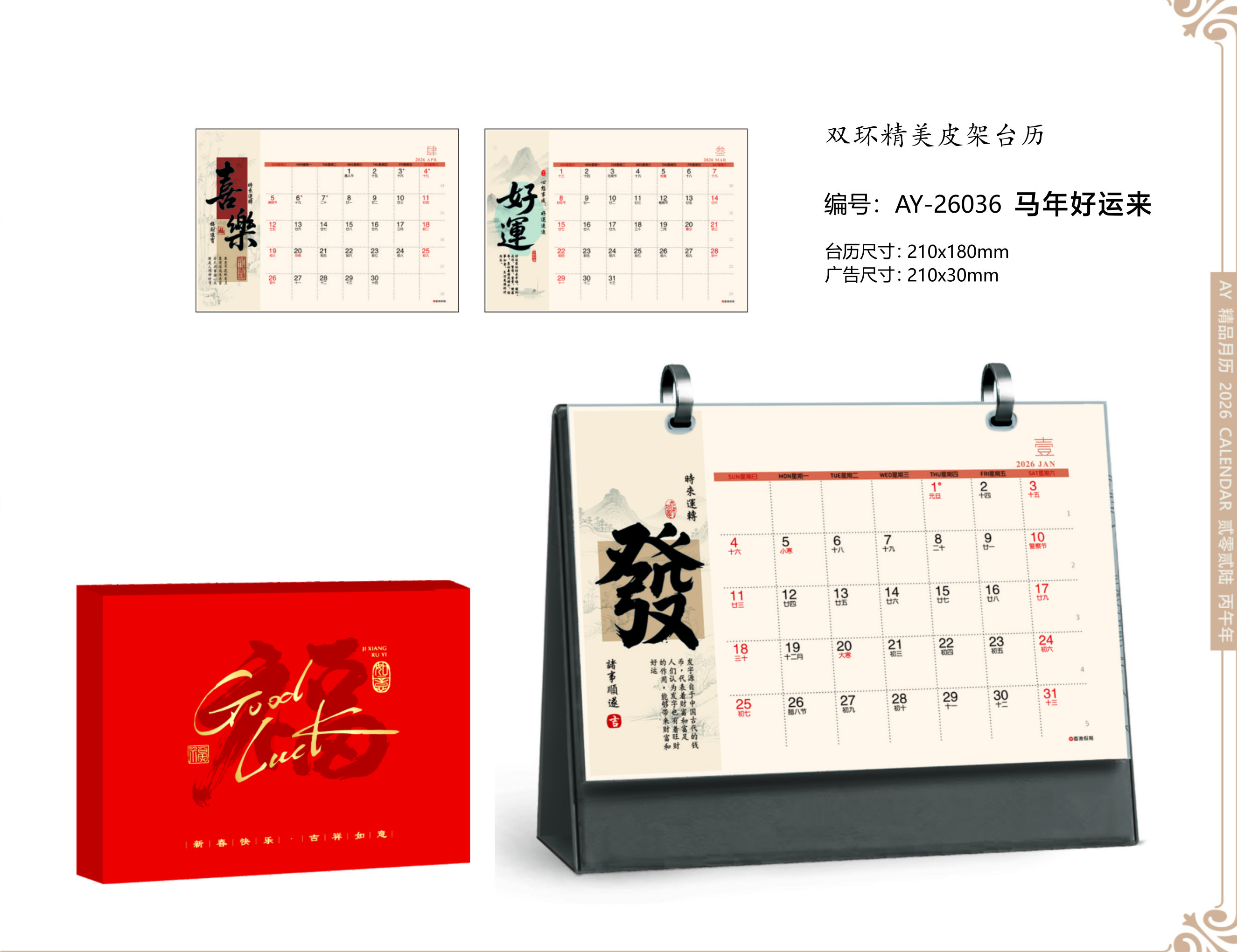 双环精美皮架台历-马年好运来