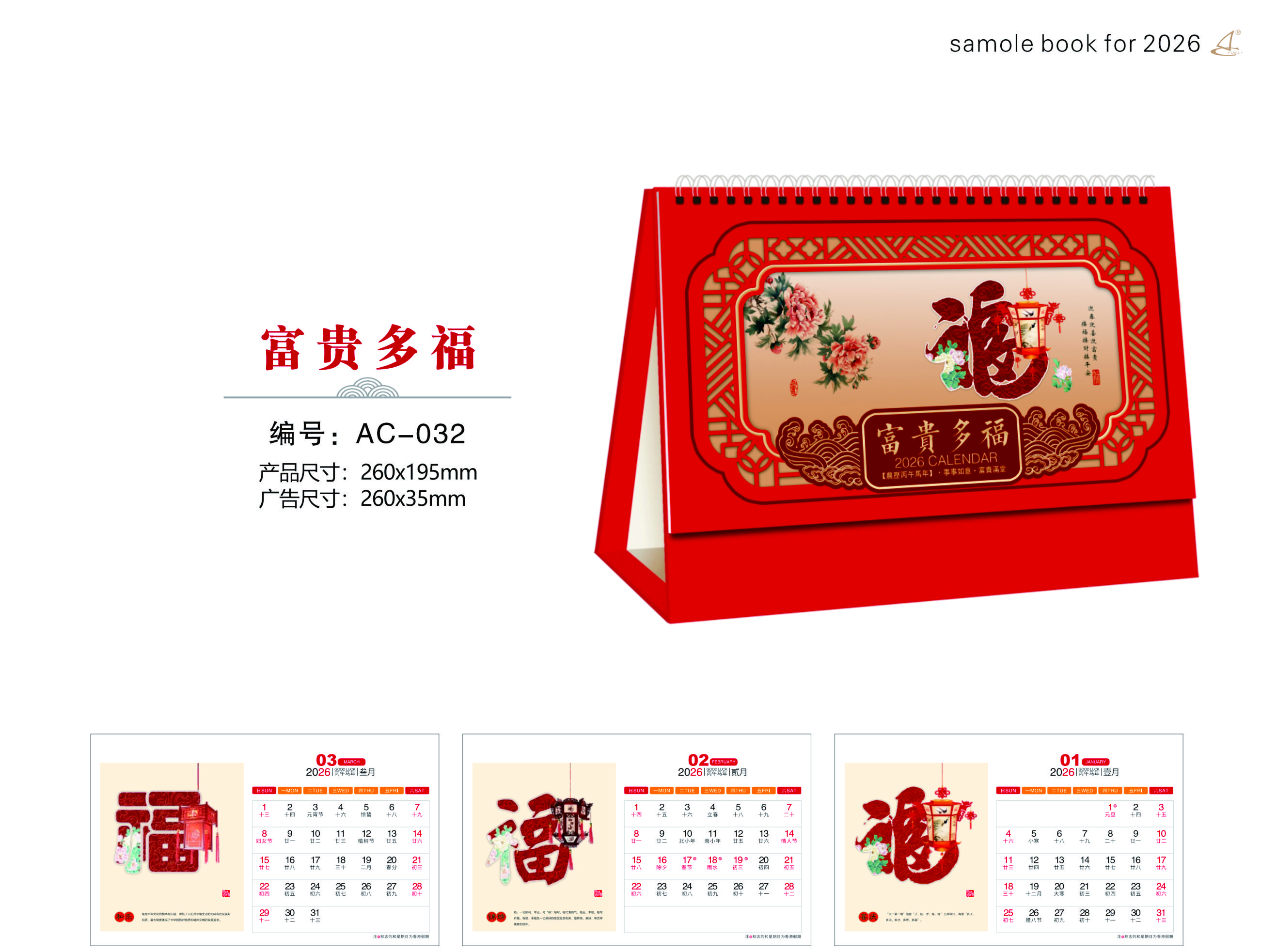 十四张触感红镂空浮雕烫双色金工艺台历-富贵多福