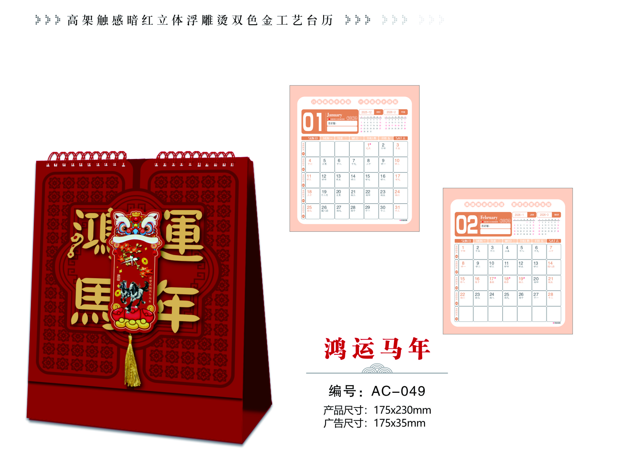 高架触感暗红立体浮雕烫双色金工艺台历-鸿运马年