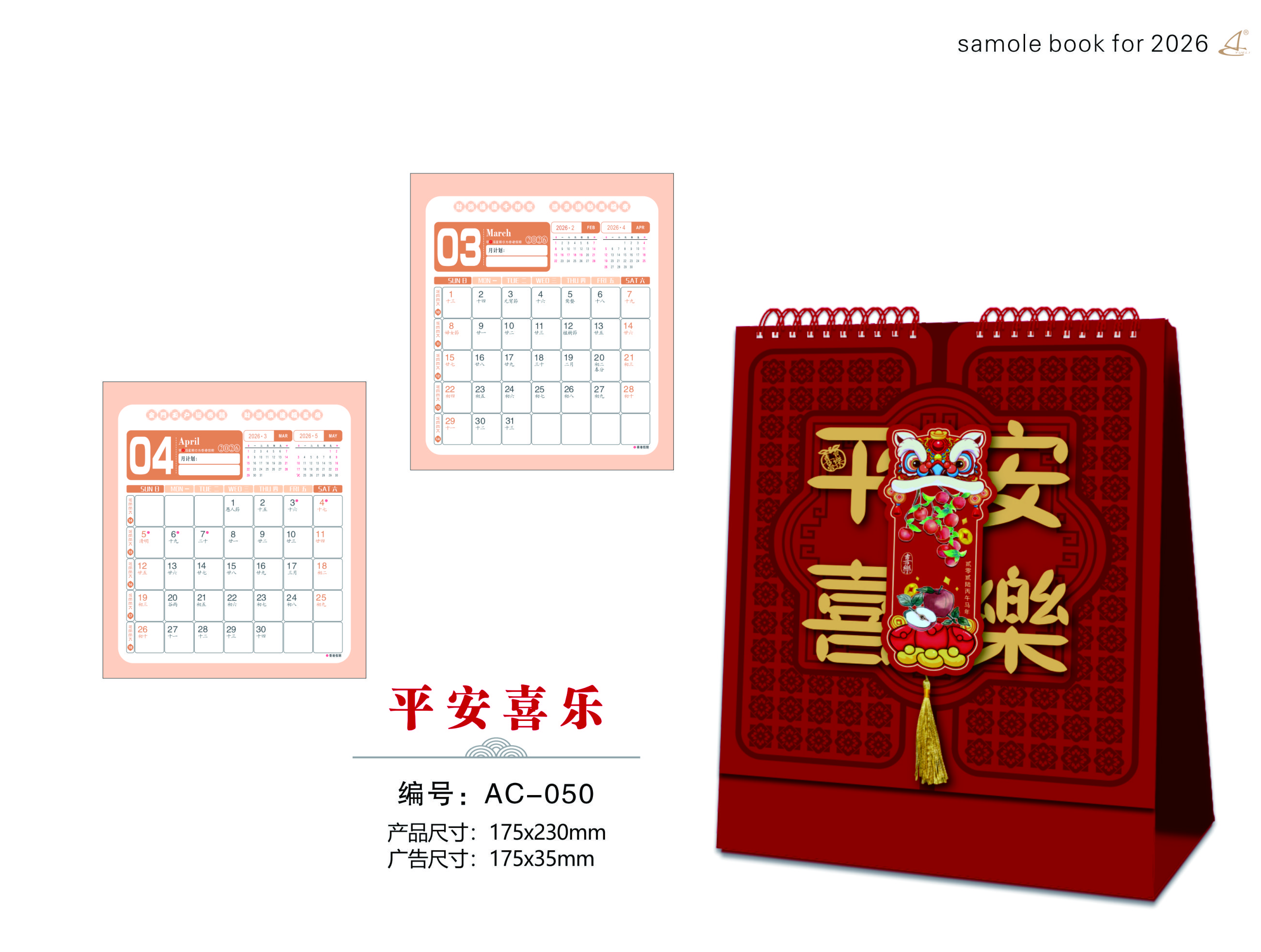 高架触感暗红立体浮雕烫双色金工艺台历-平安喜乐