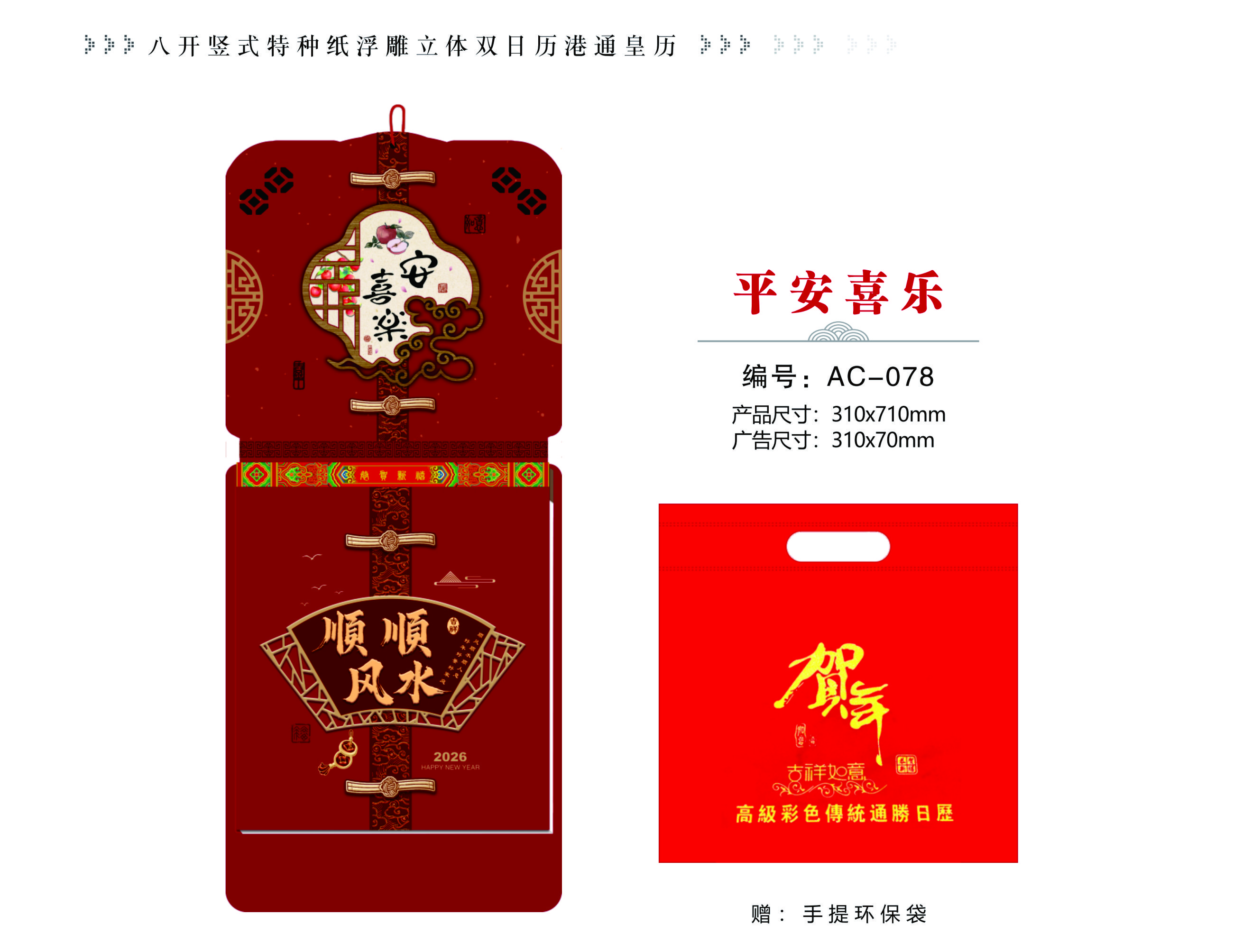 八开竖式特种纸浮雕立体双日历港通皇历-平安喜乐