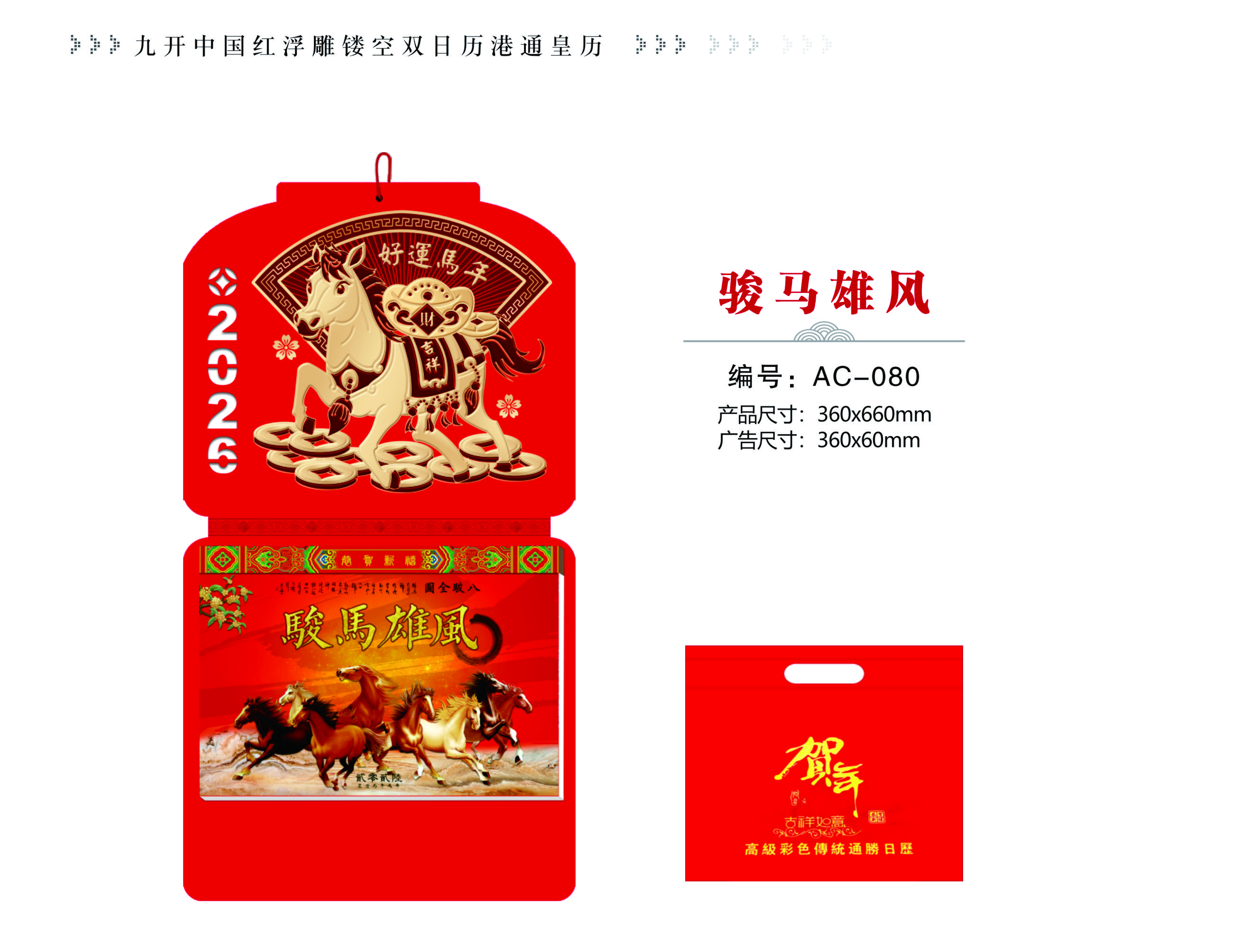 九开中国红浮雕镂空双日历港通皇历-骏马雄风