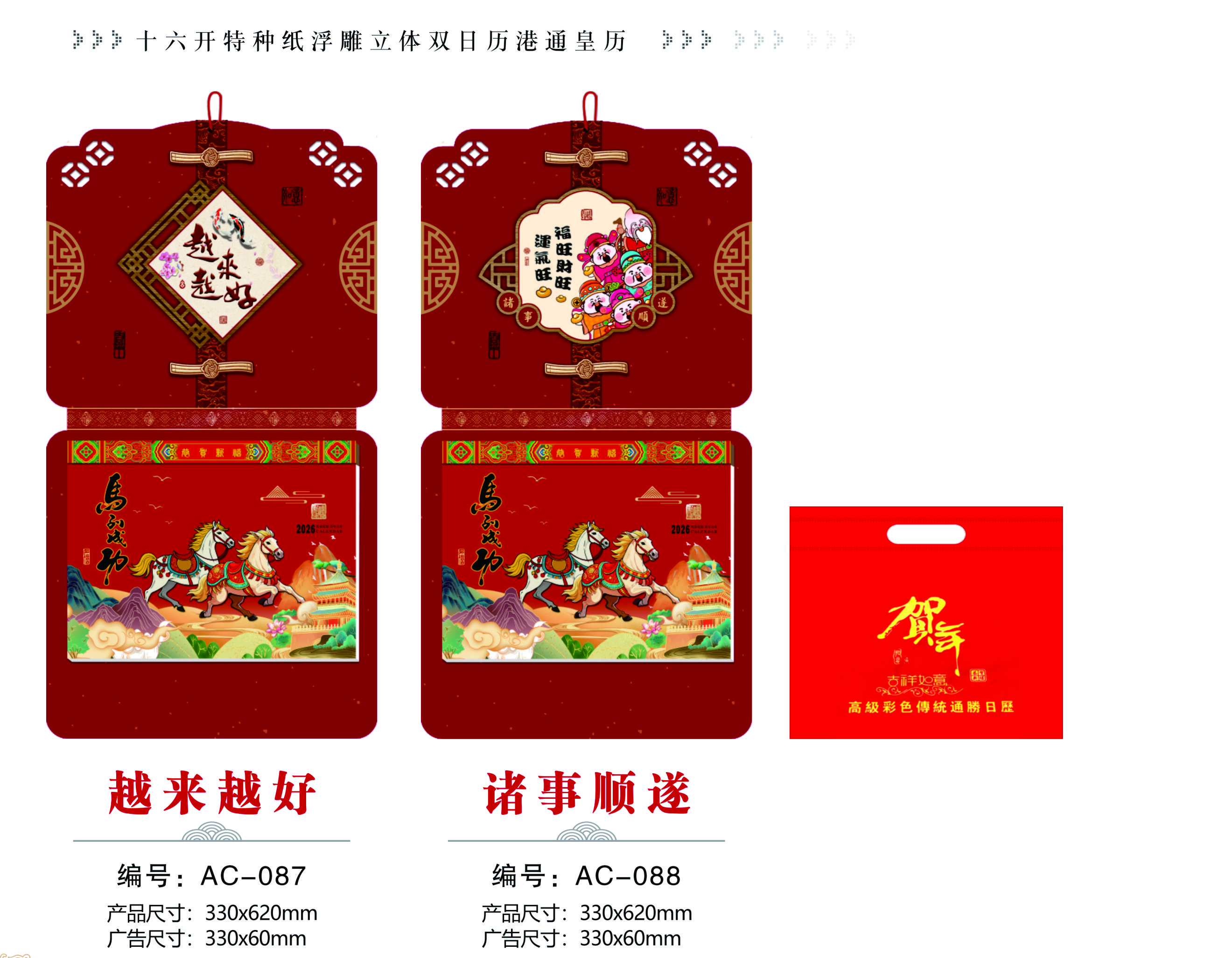十六开特种纸浮雕立体双日历港通皇历-越来越好