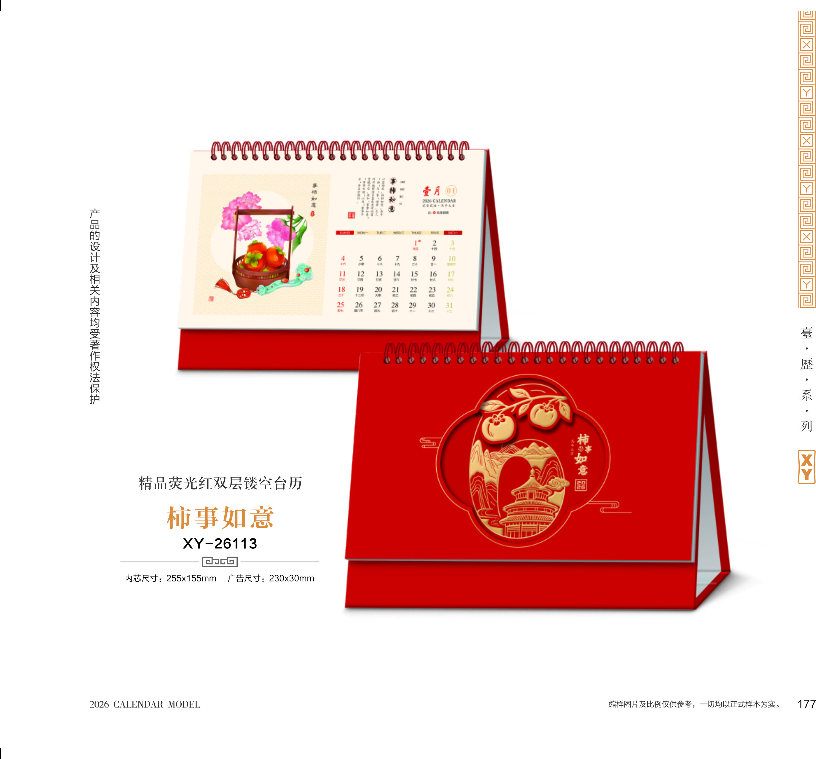 精品荧光红双层镂空台历-越来越好