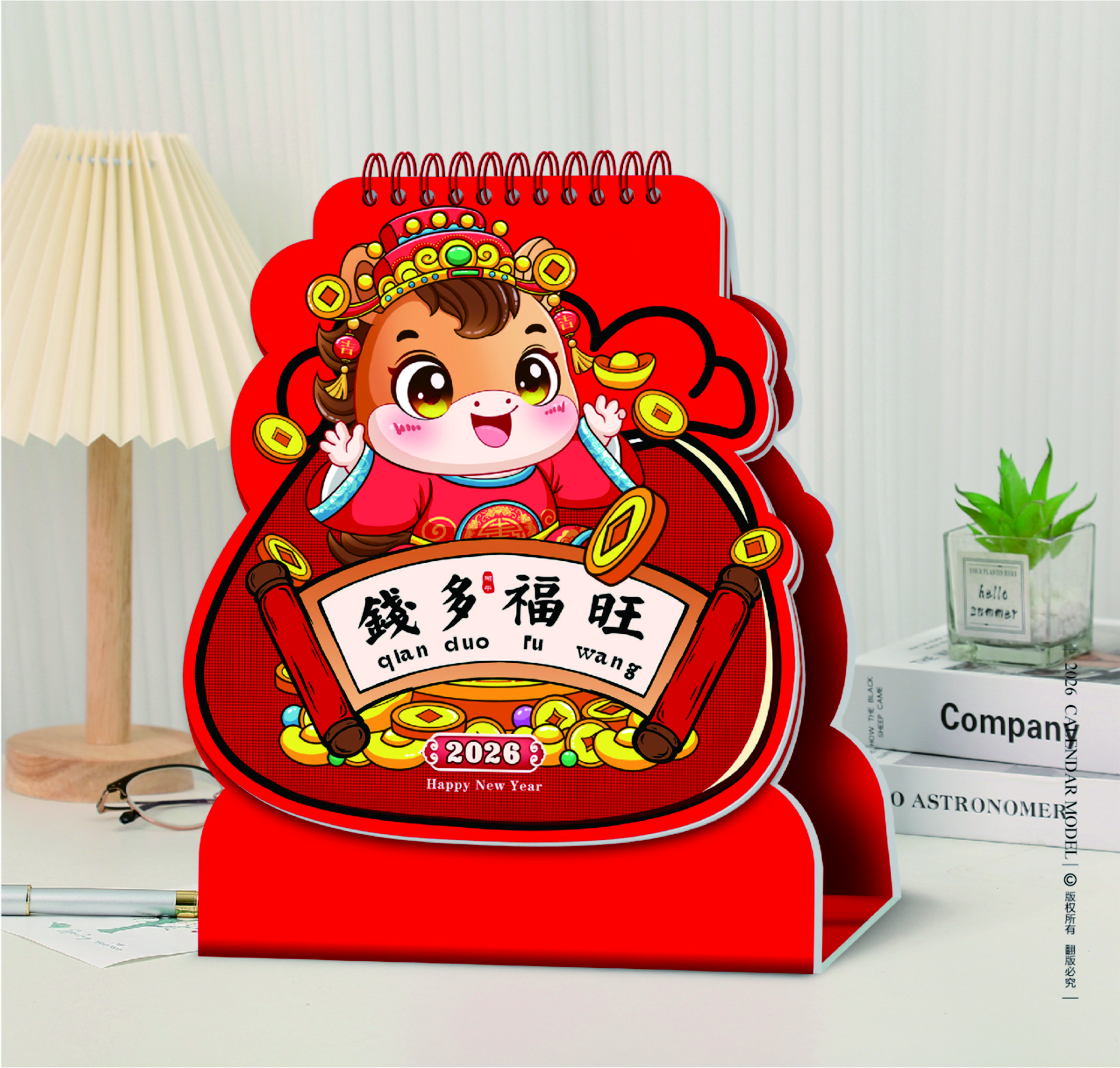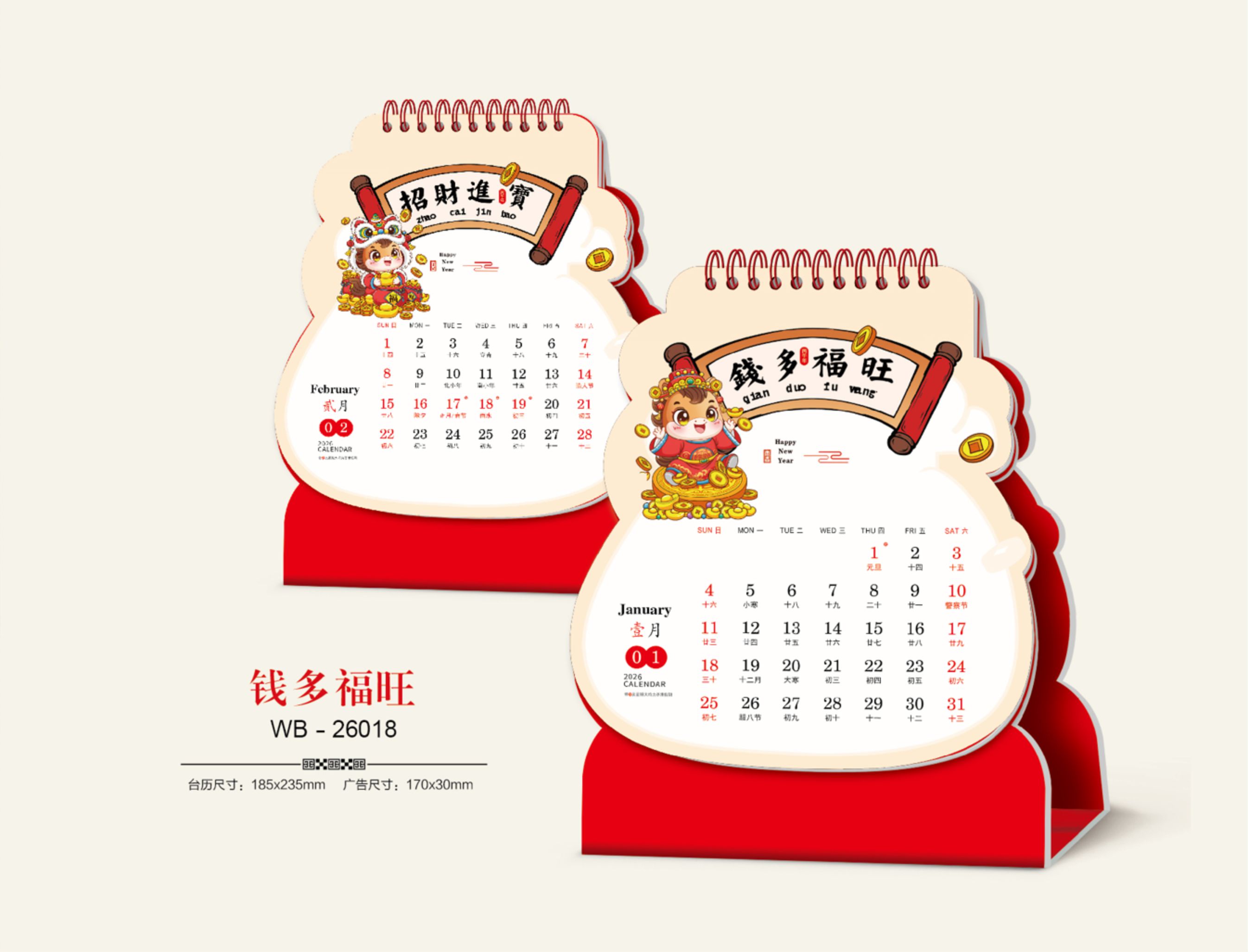 十三张特色异型浮雕艺术台历-钱多福旺