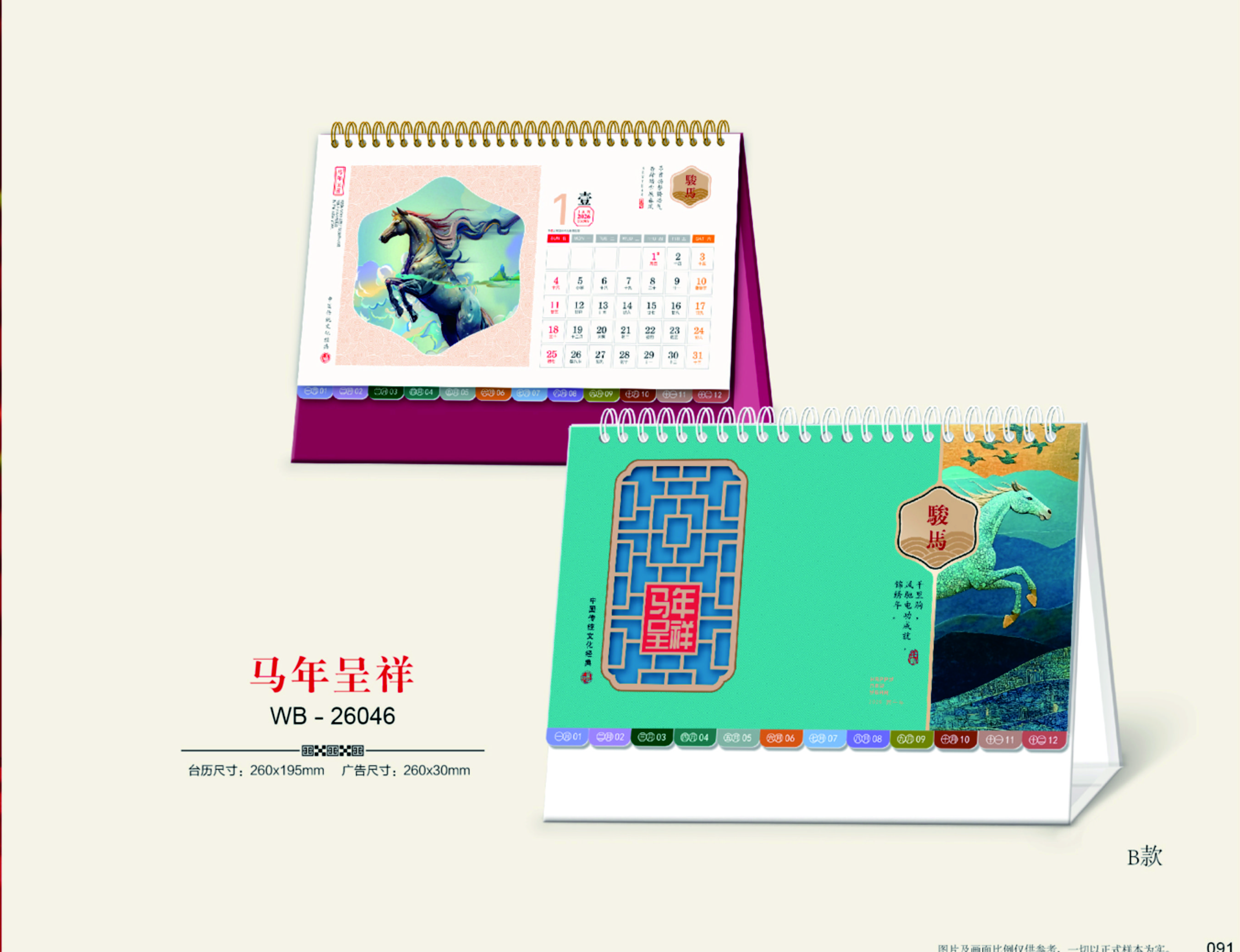 十四张紫韵高雅艺术台历-马年呈祥