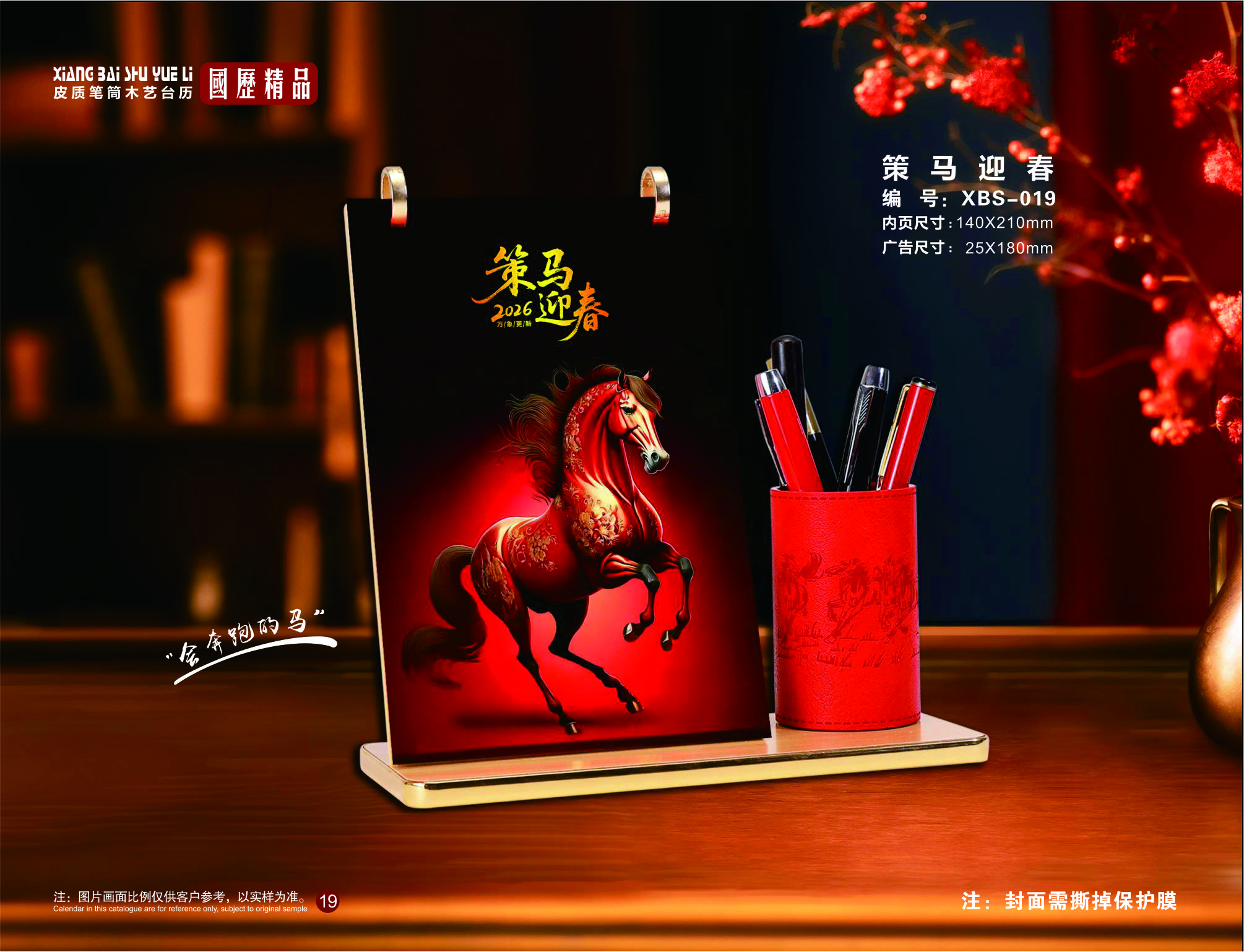 皮质笔筒木艺台历-策马迎春