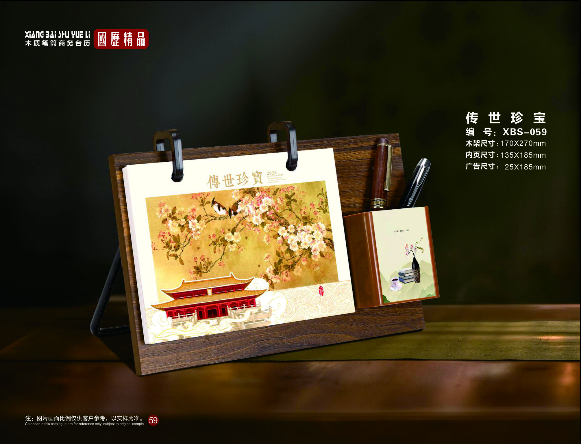 木质笔筒商务台历-传世珍宝