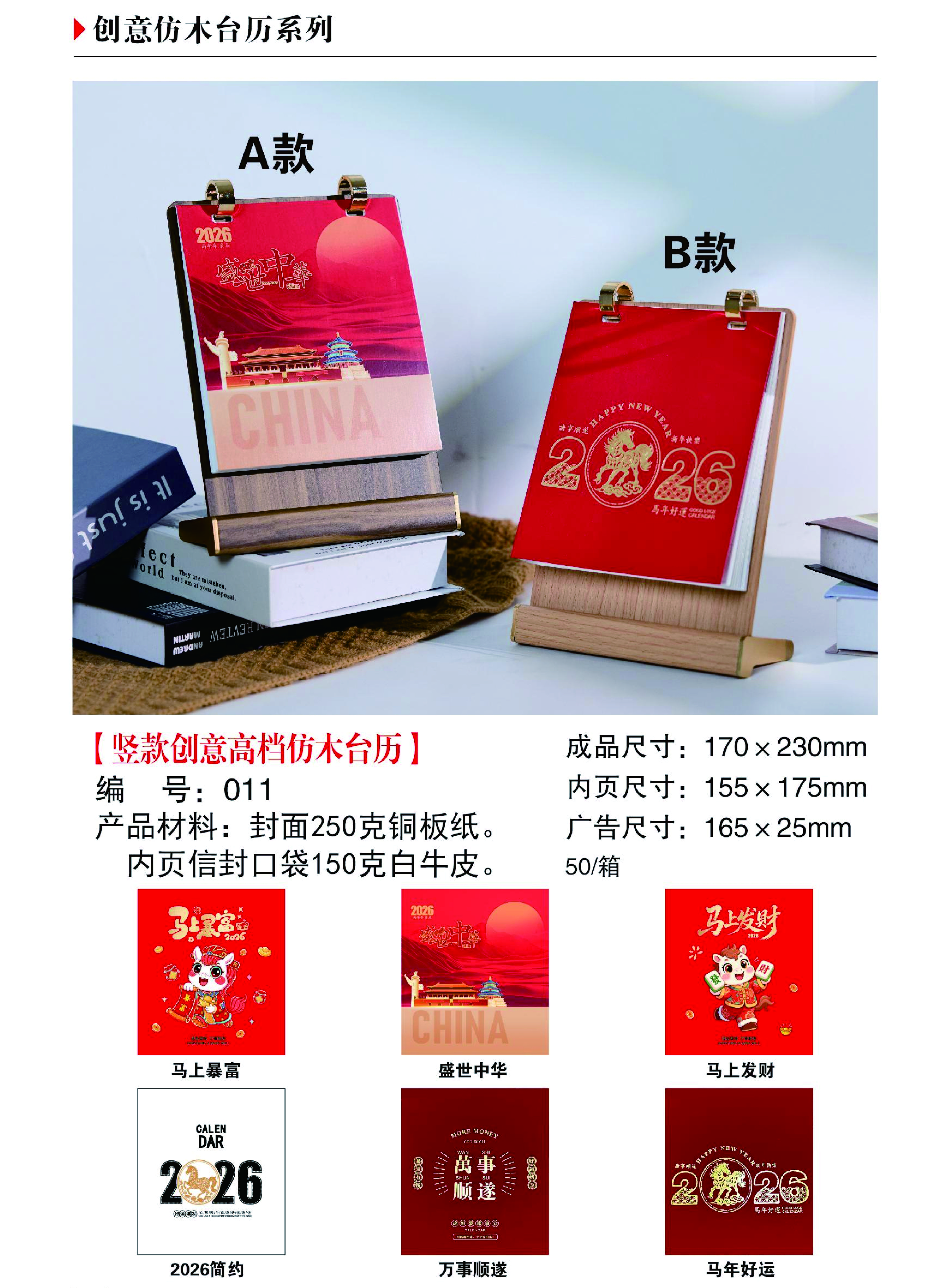 竖款创意高档仿木台历-A款-B款