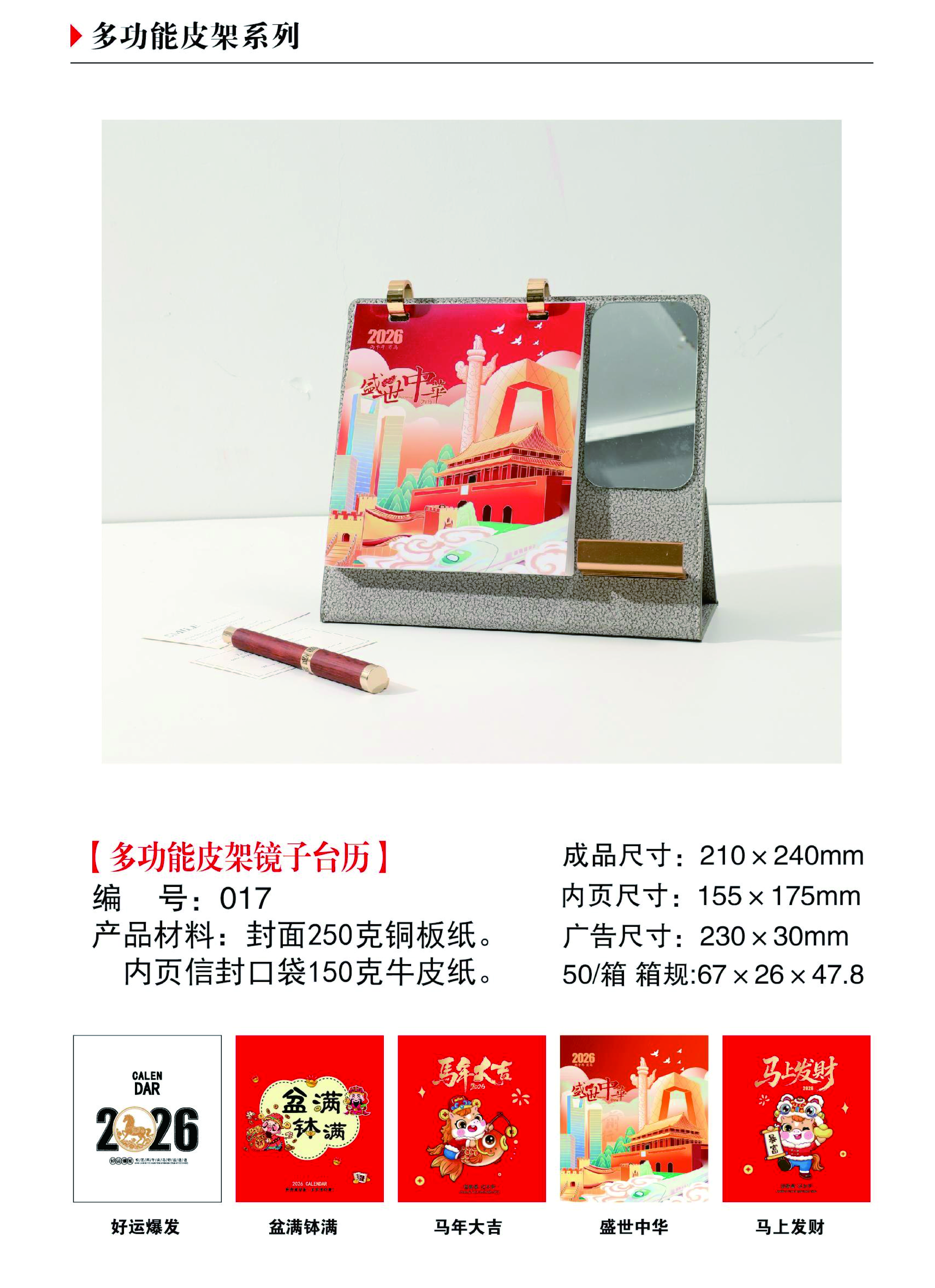 多功能皮架镜子台历-盛世中华
