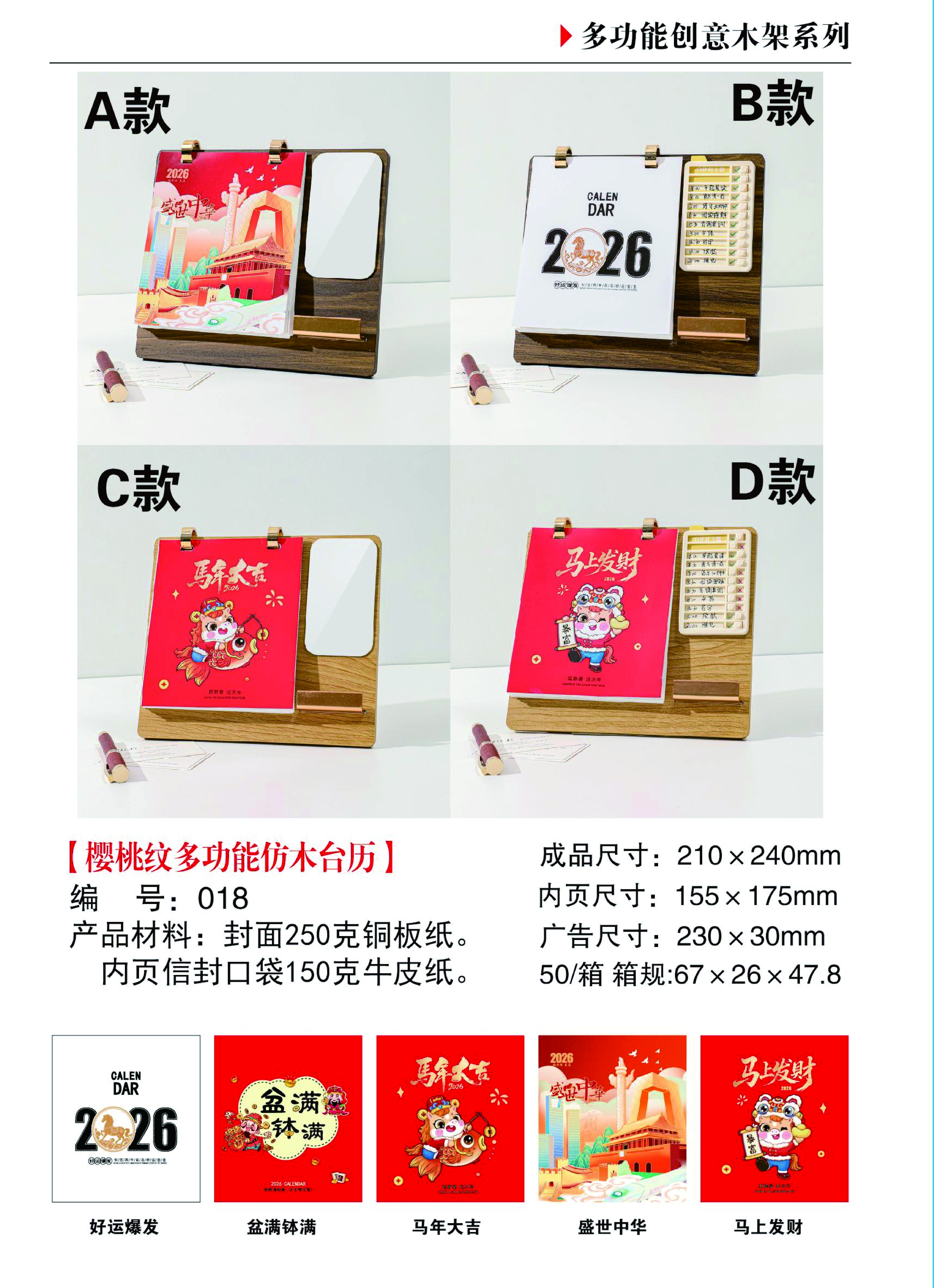樱桃纹多功能仿木台历-A款-盛世中华
