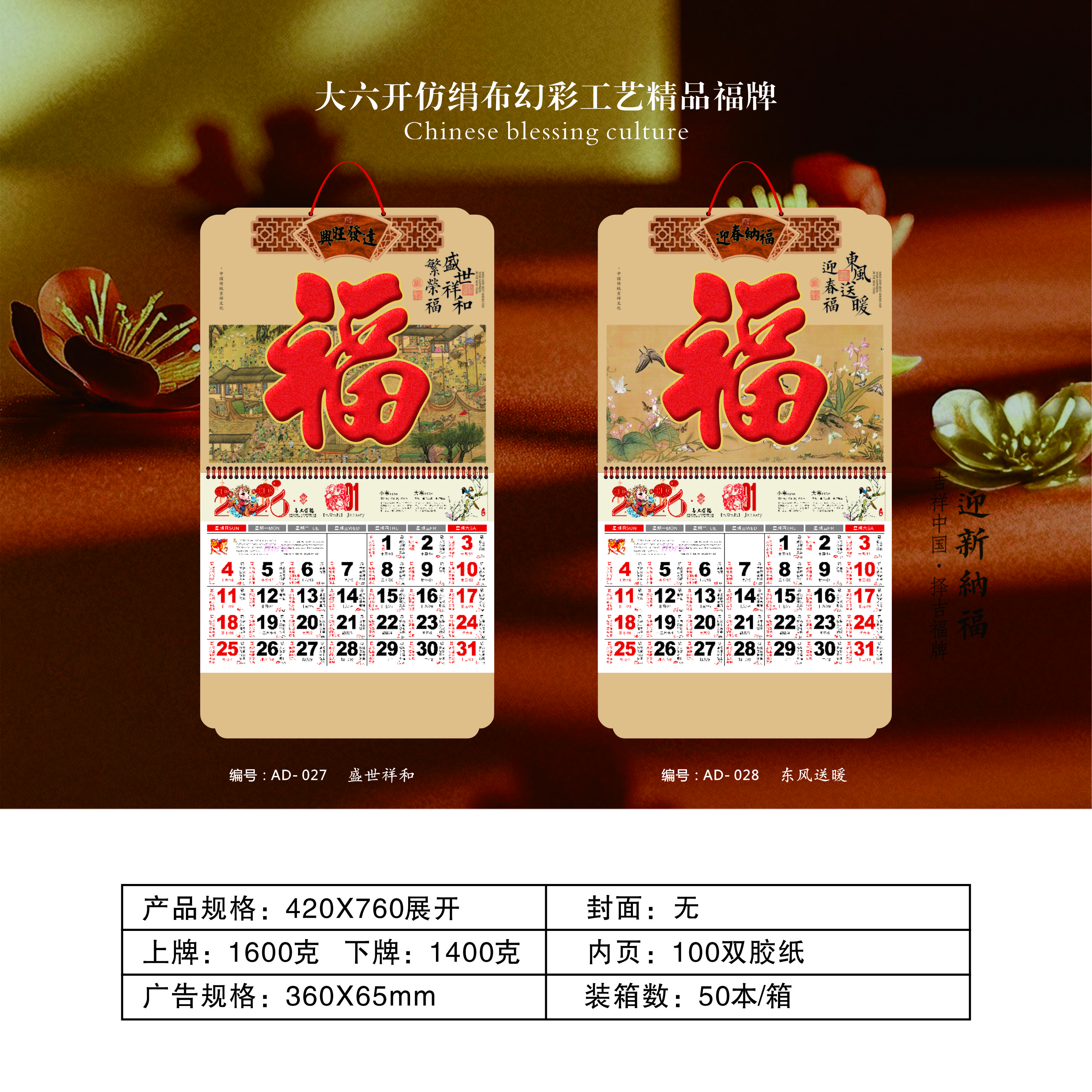 大六开仿绢布幻彩工艺精品福牌-盛世祥和