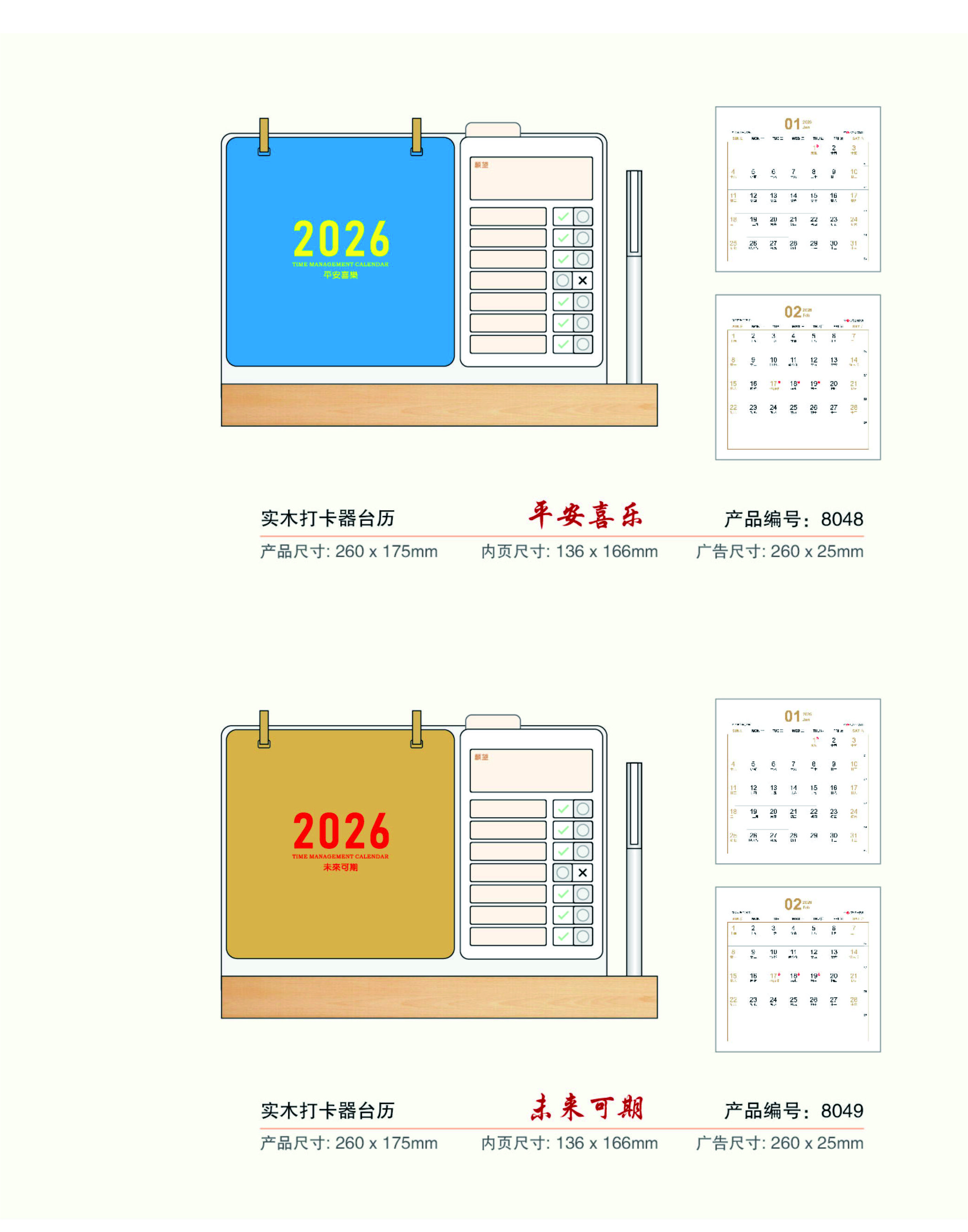 实木打卡器台历-平安喜乐