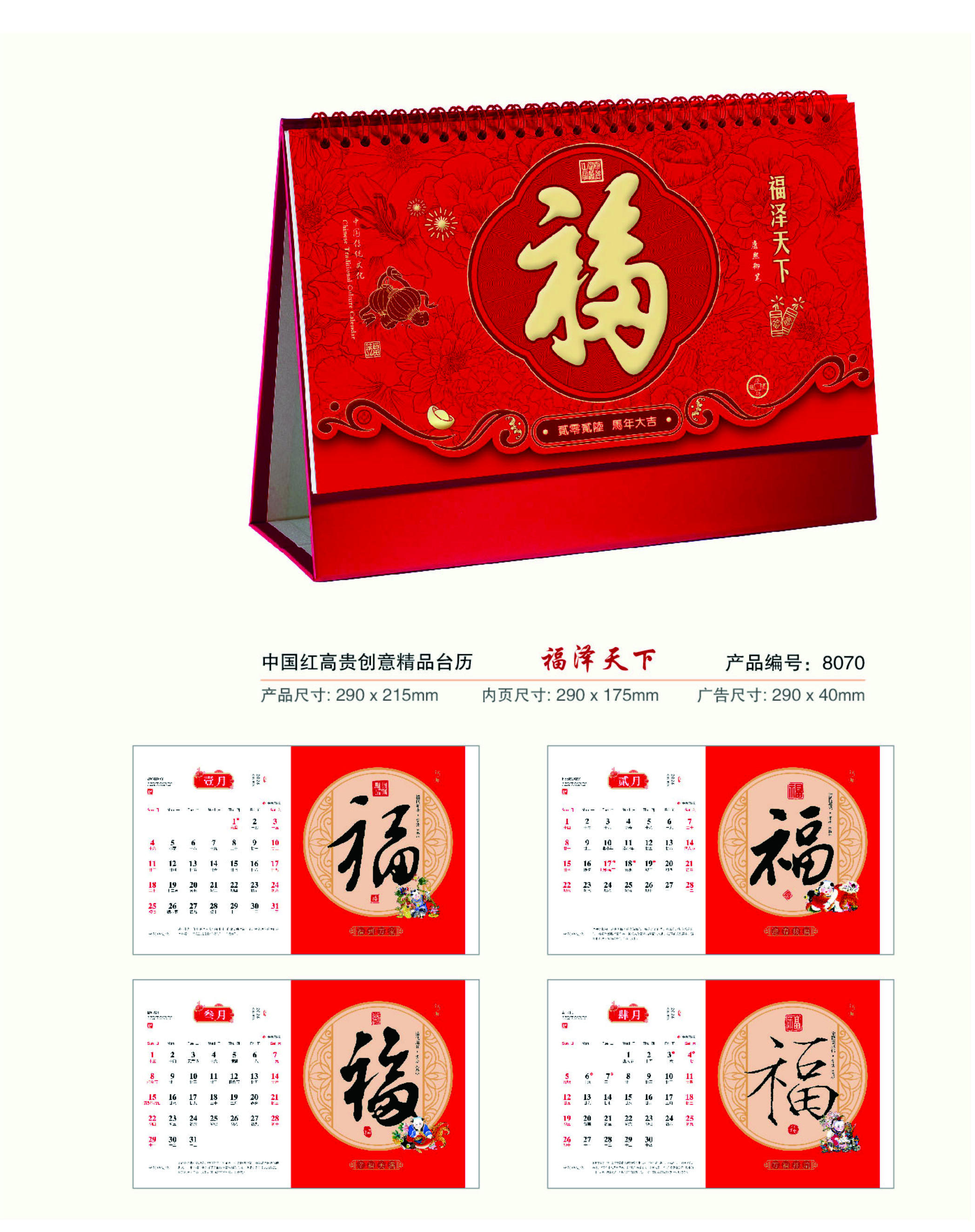 中国红高贵创意精品台历-福泽天下