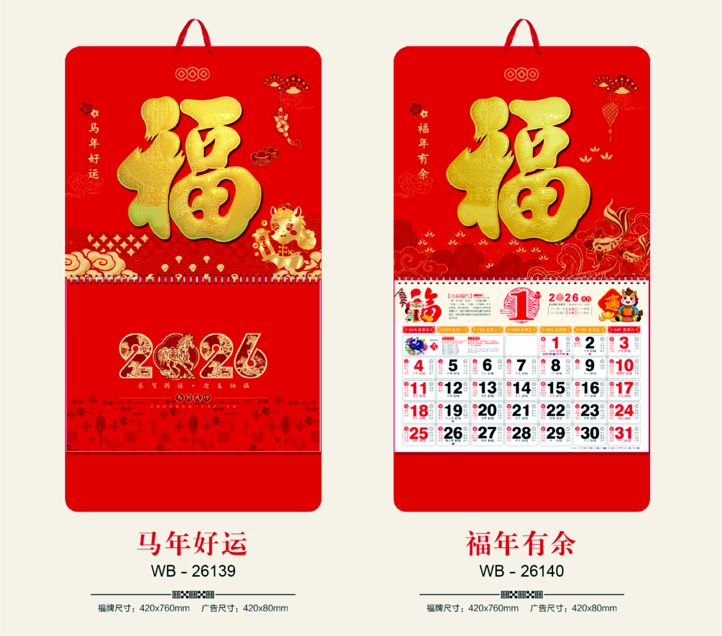 大度六开中国红浮雕福牌(加封面)-马年好运-福年有余